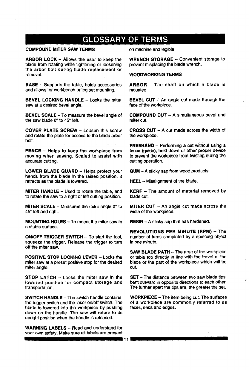 Know Your Compound Miter Saw .......... 10