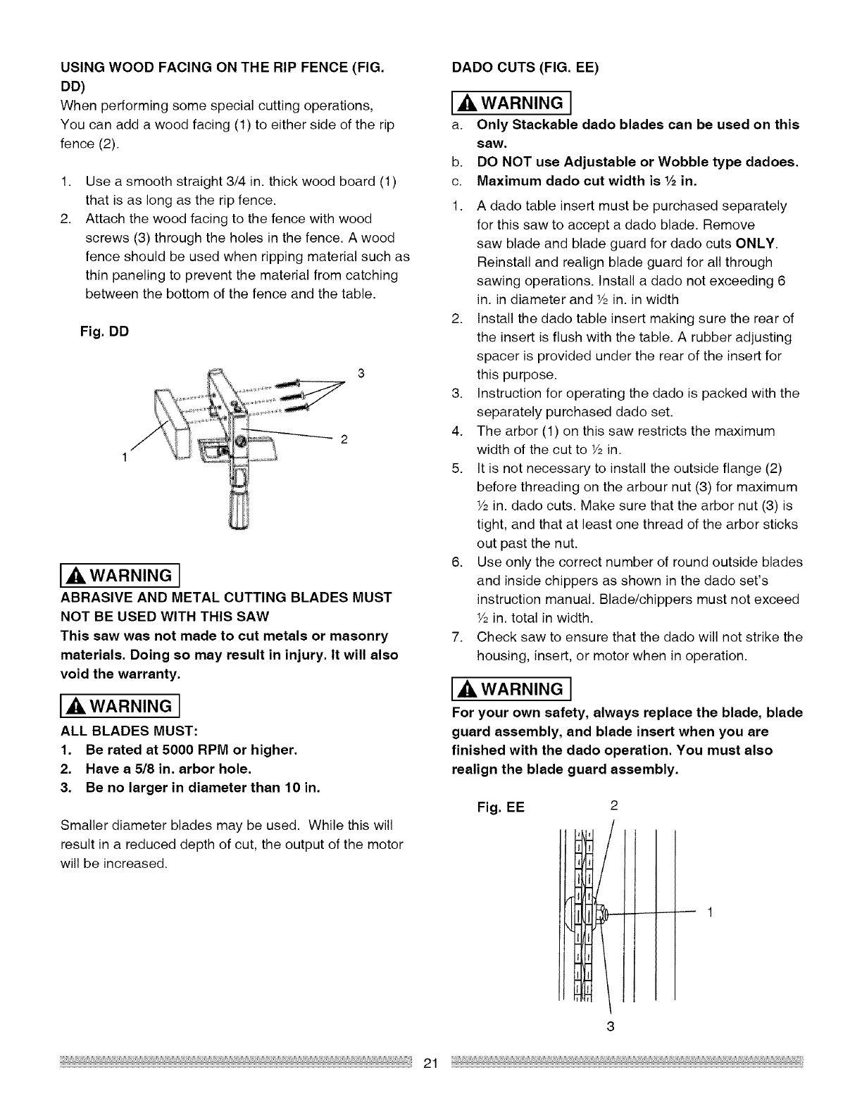 Maximum Diameter Dado ............. 6 in. (Stackable only)