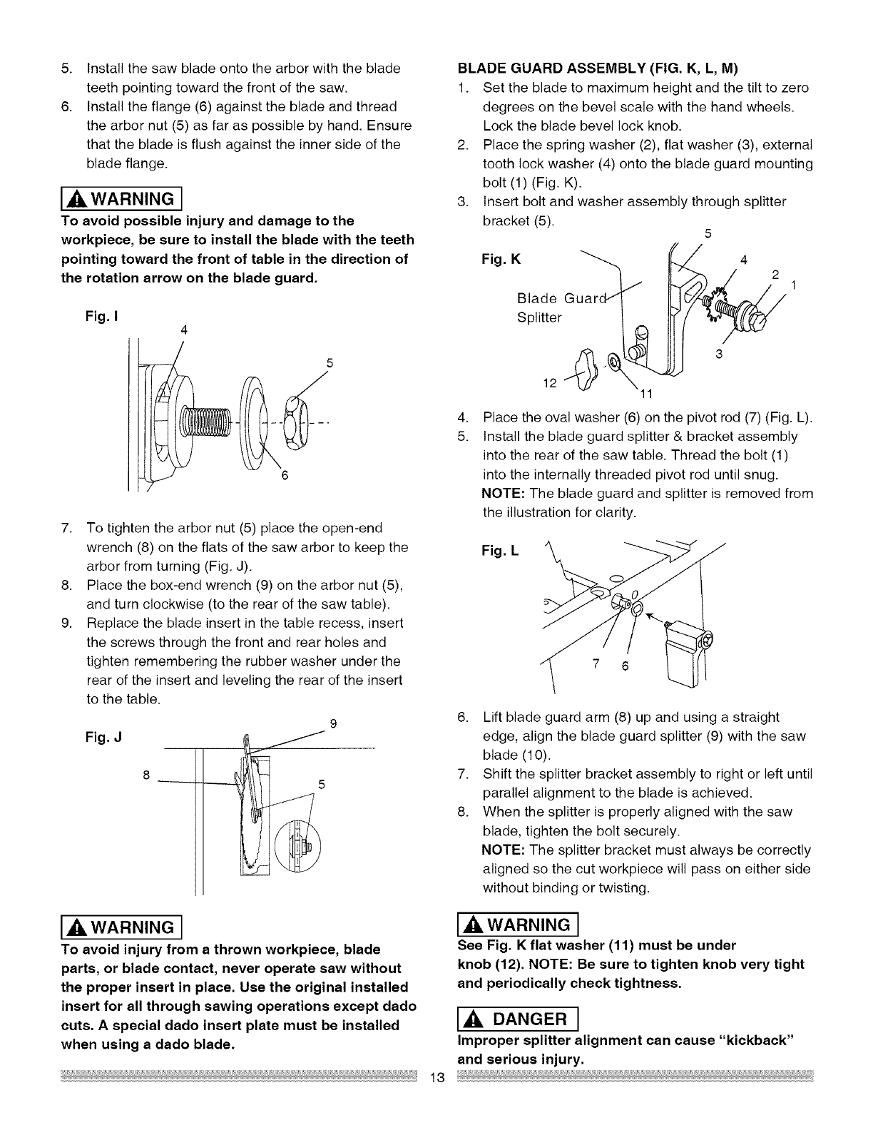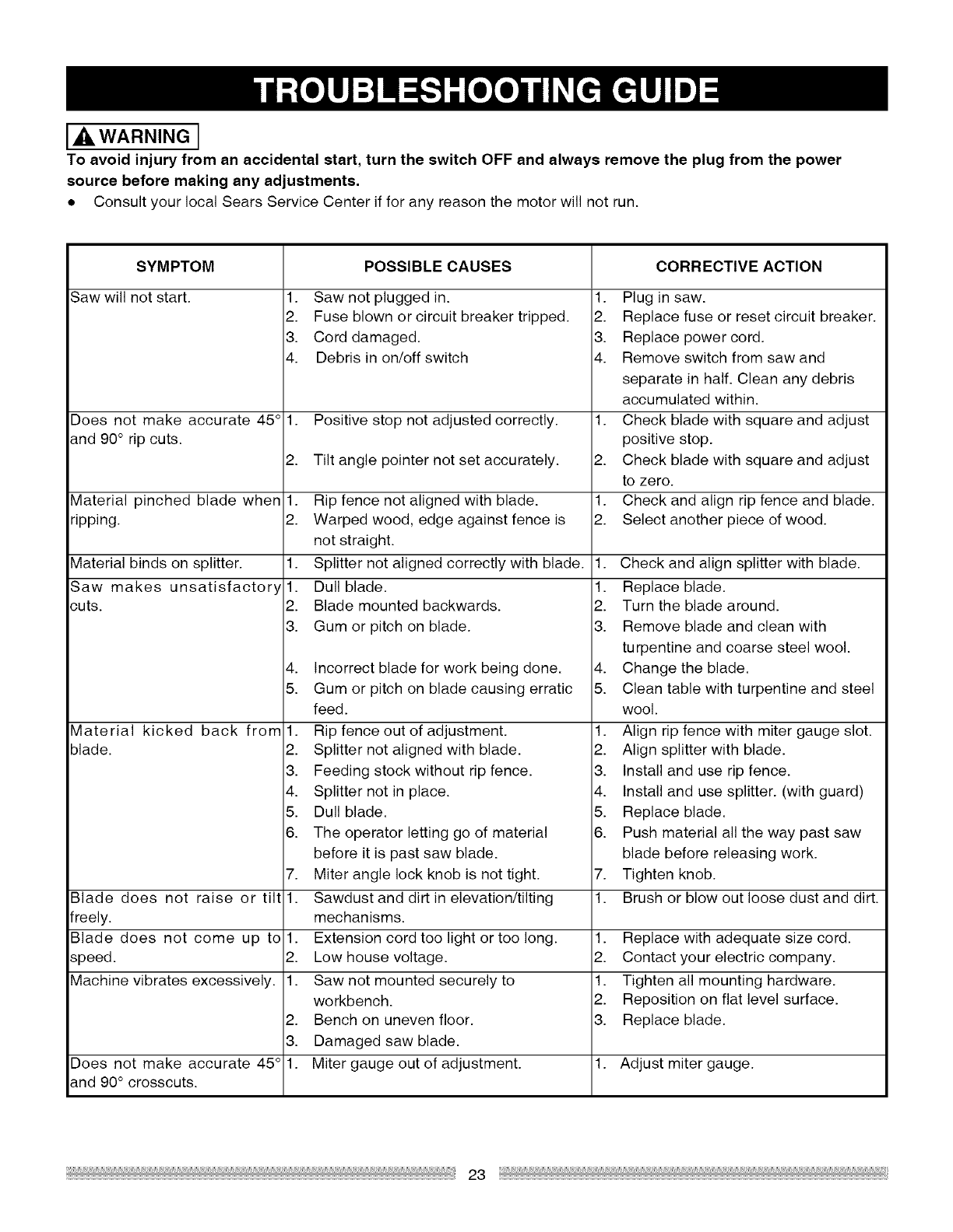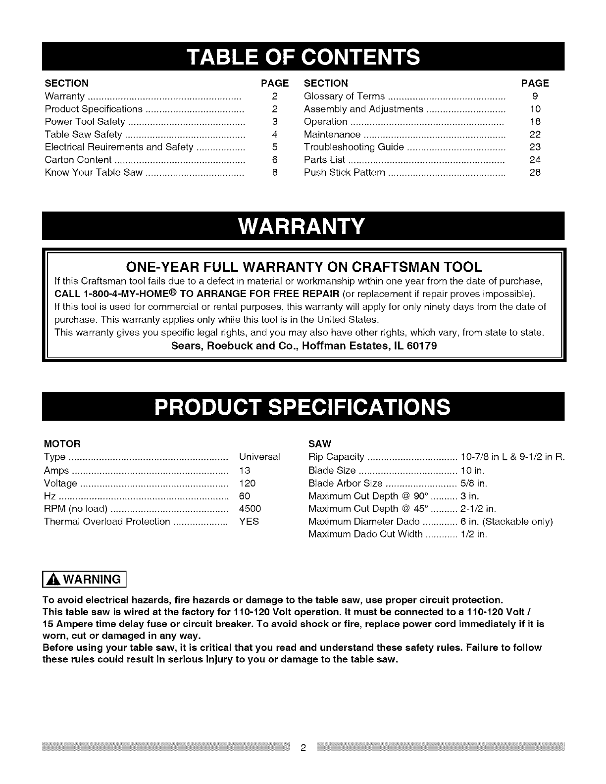 Craftsman 137218020 User Manual TABLE SAW Manuals And Guides L0604856