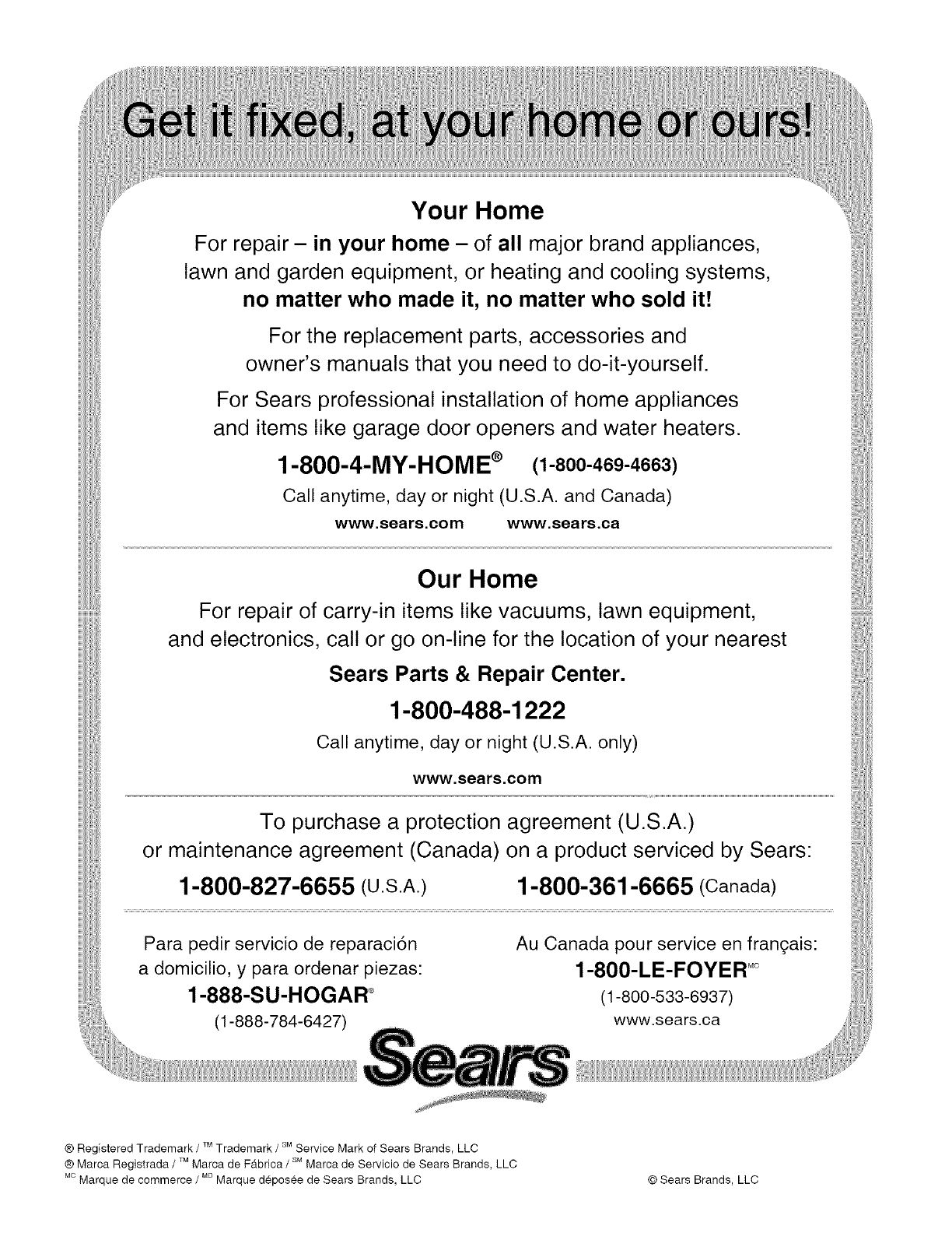 ® Registered Trademark /Trademark /s Service Mark of Sears Brands, LLC