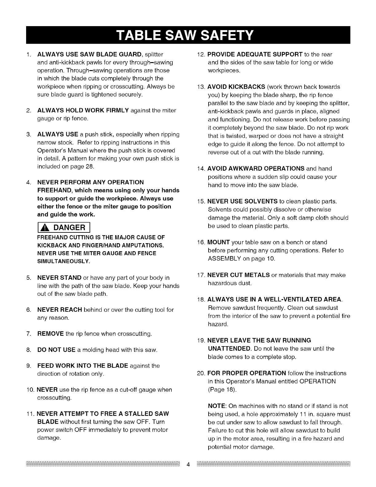 Before using your table saw, it is critical that you read and understand these safety rules. Failure to follow