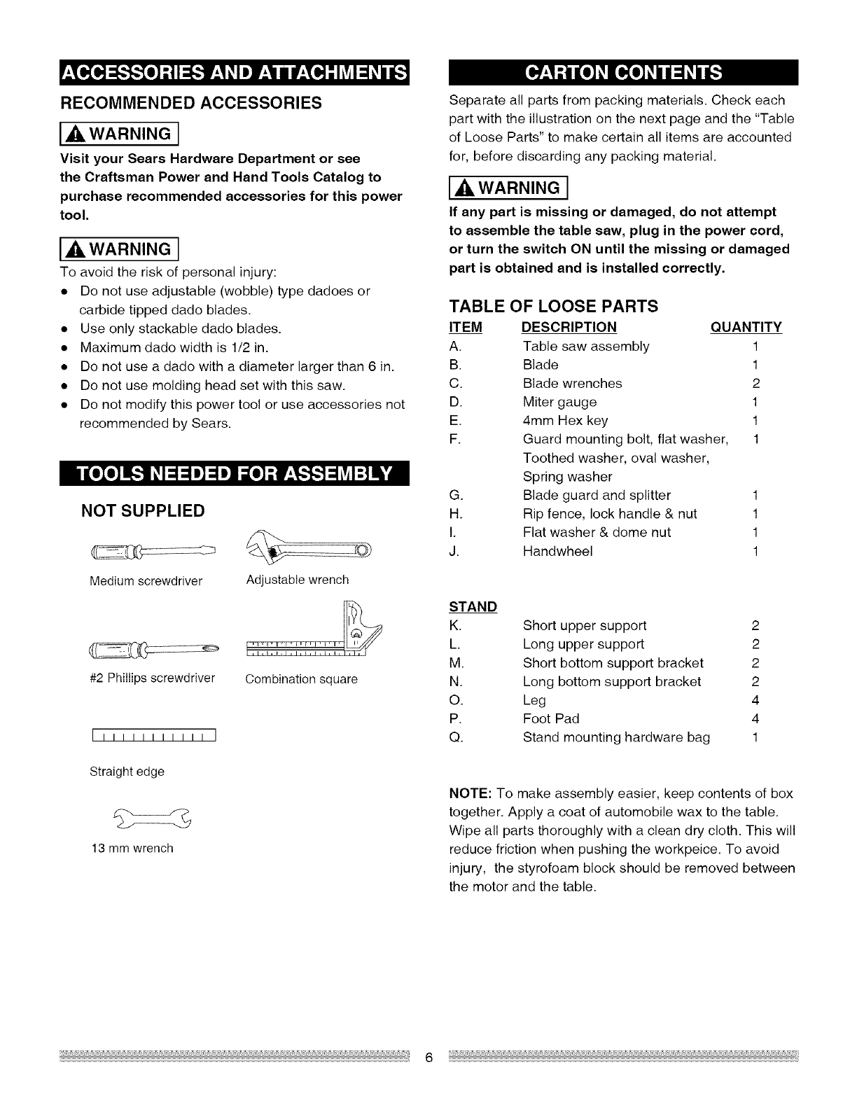 CRAFTSMAN Saw Table Manual L0604856 CRAFTSMAN Saw Table Owner's Manual, CRAFTSMAN Saw Table installation guides