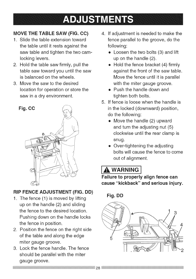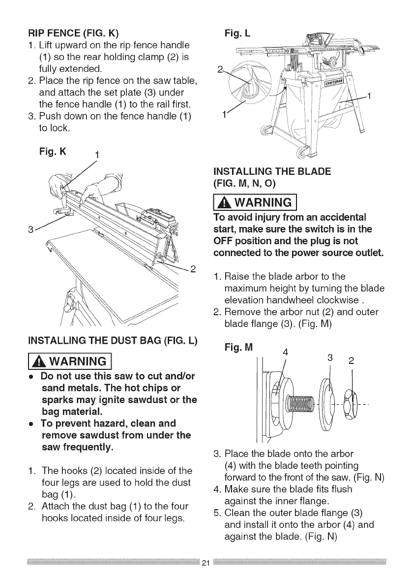 Craftsman 137218070 User Manual TABLE SAW/STAND Manuals And Guides L0810542
