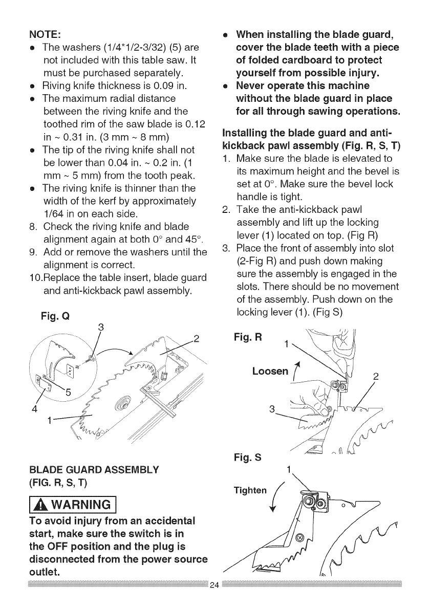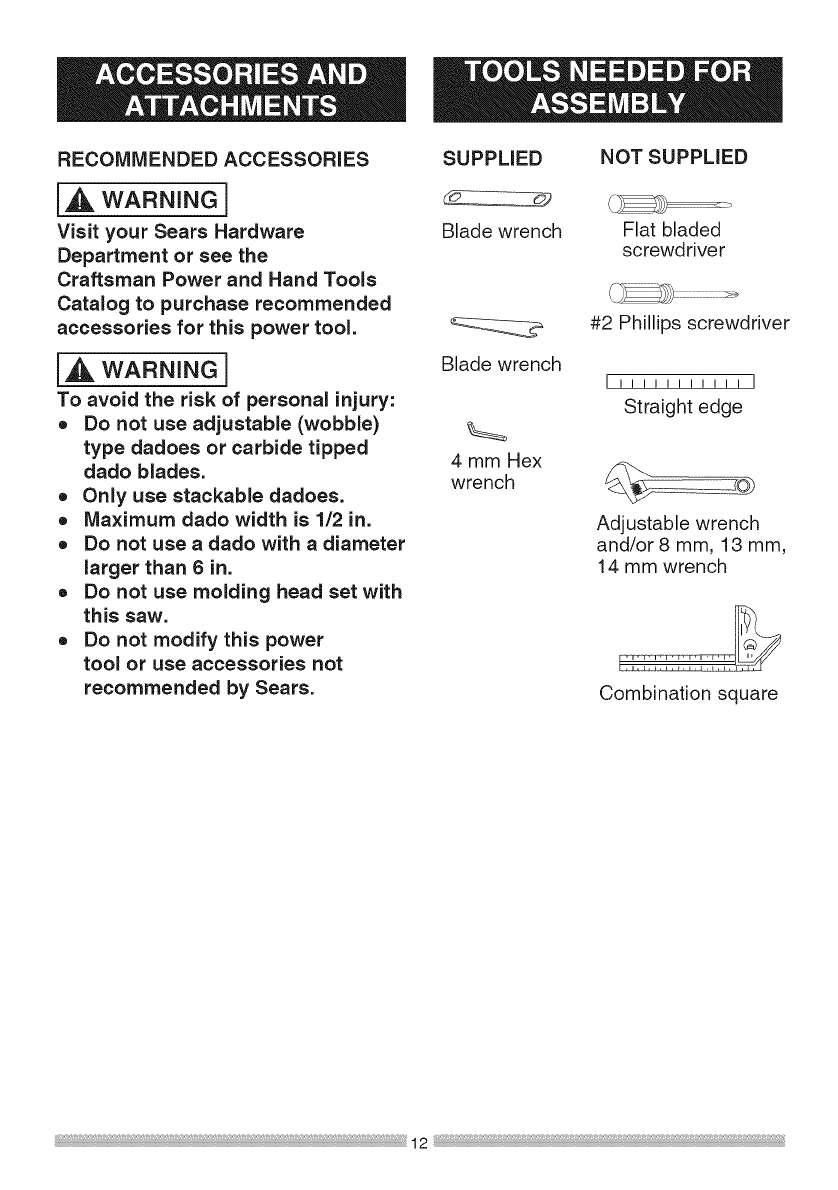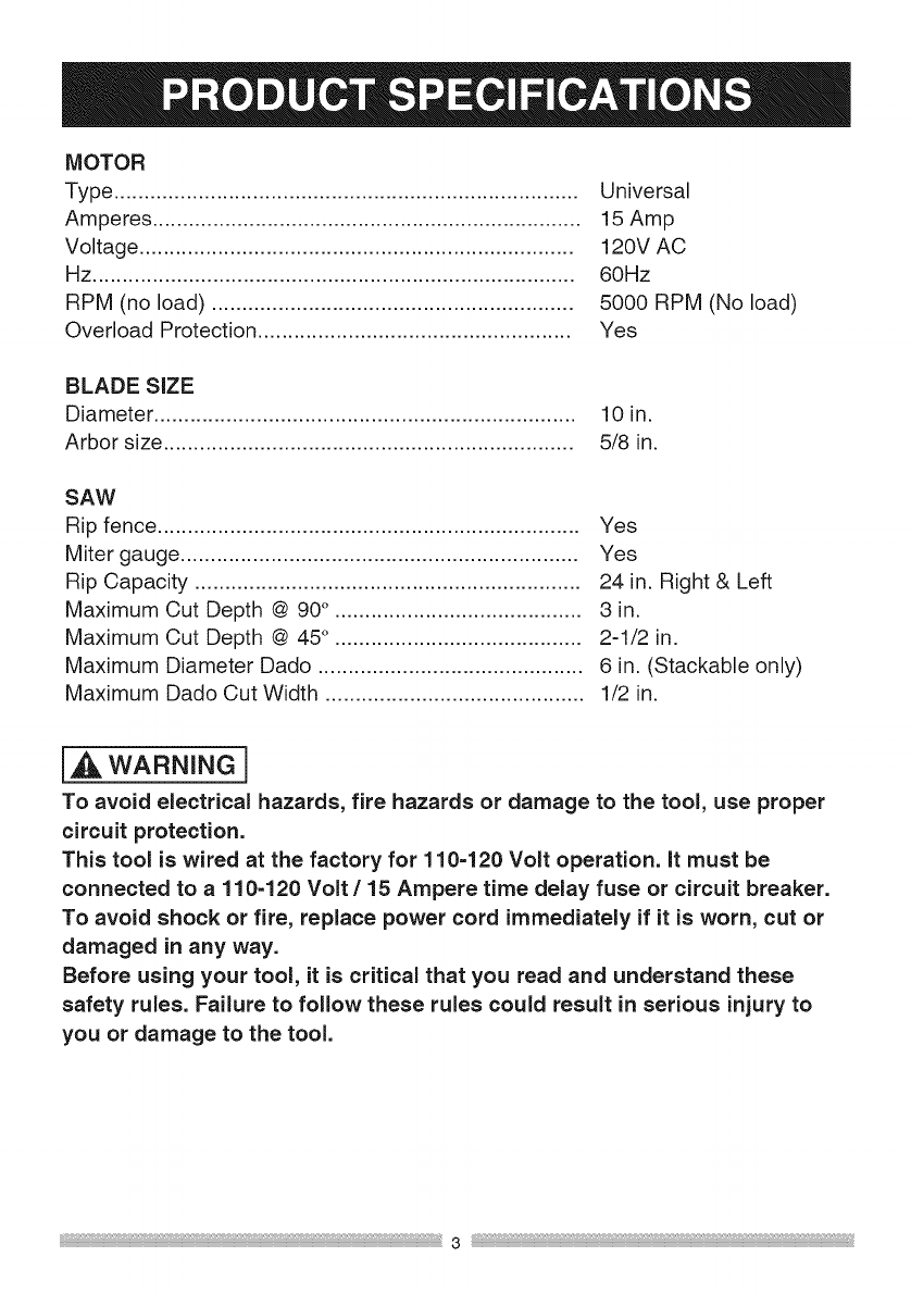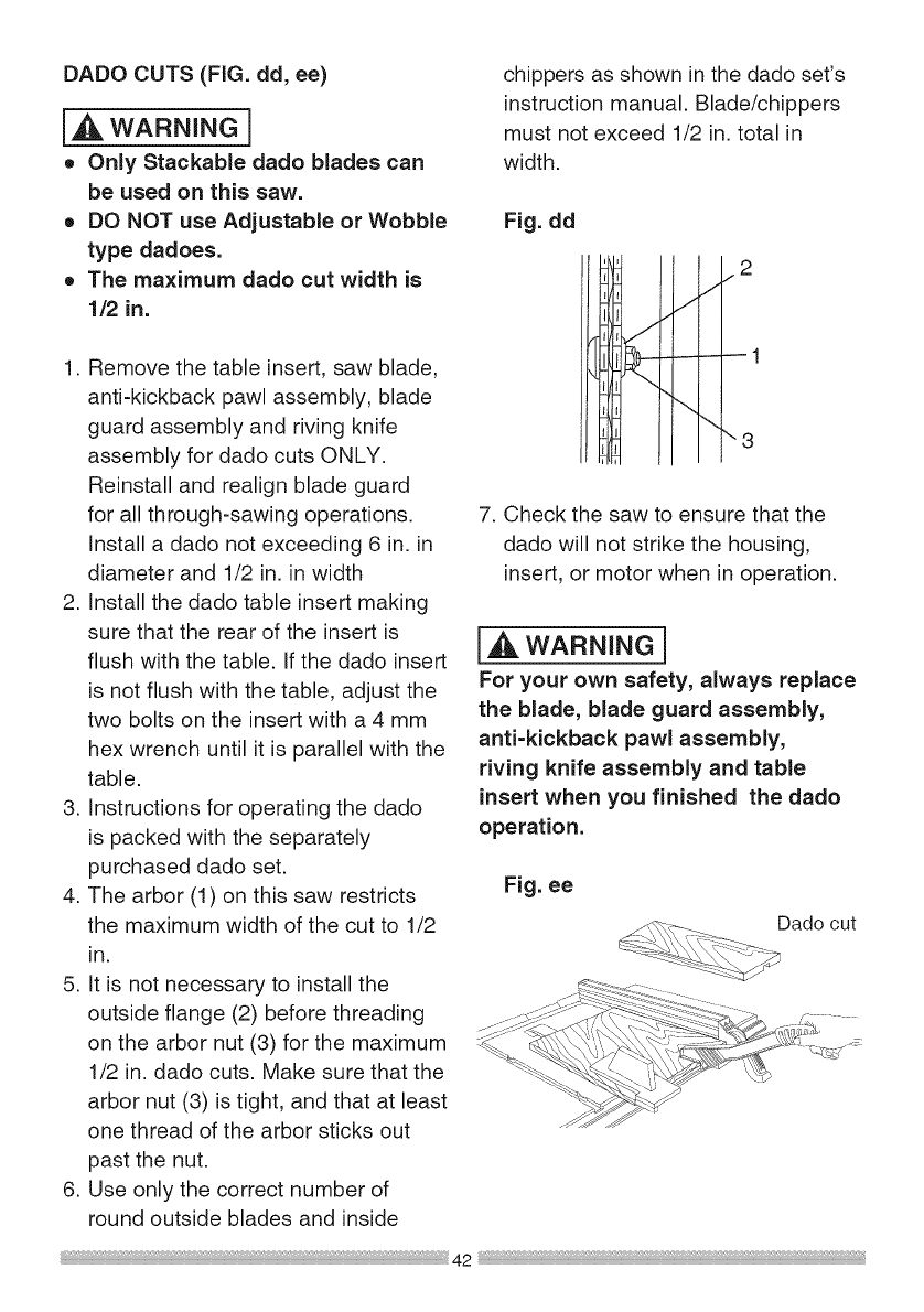 Maximum Dado Cut Width ........................................... 1/2 in.