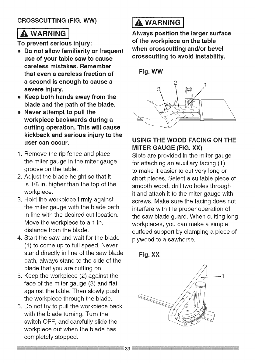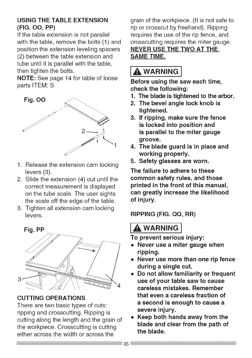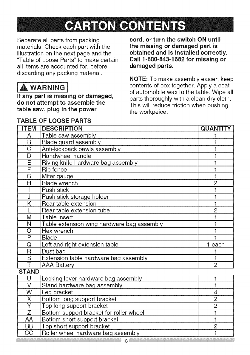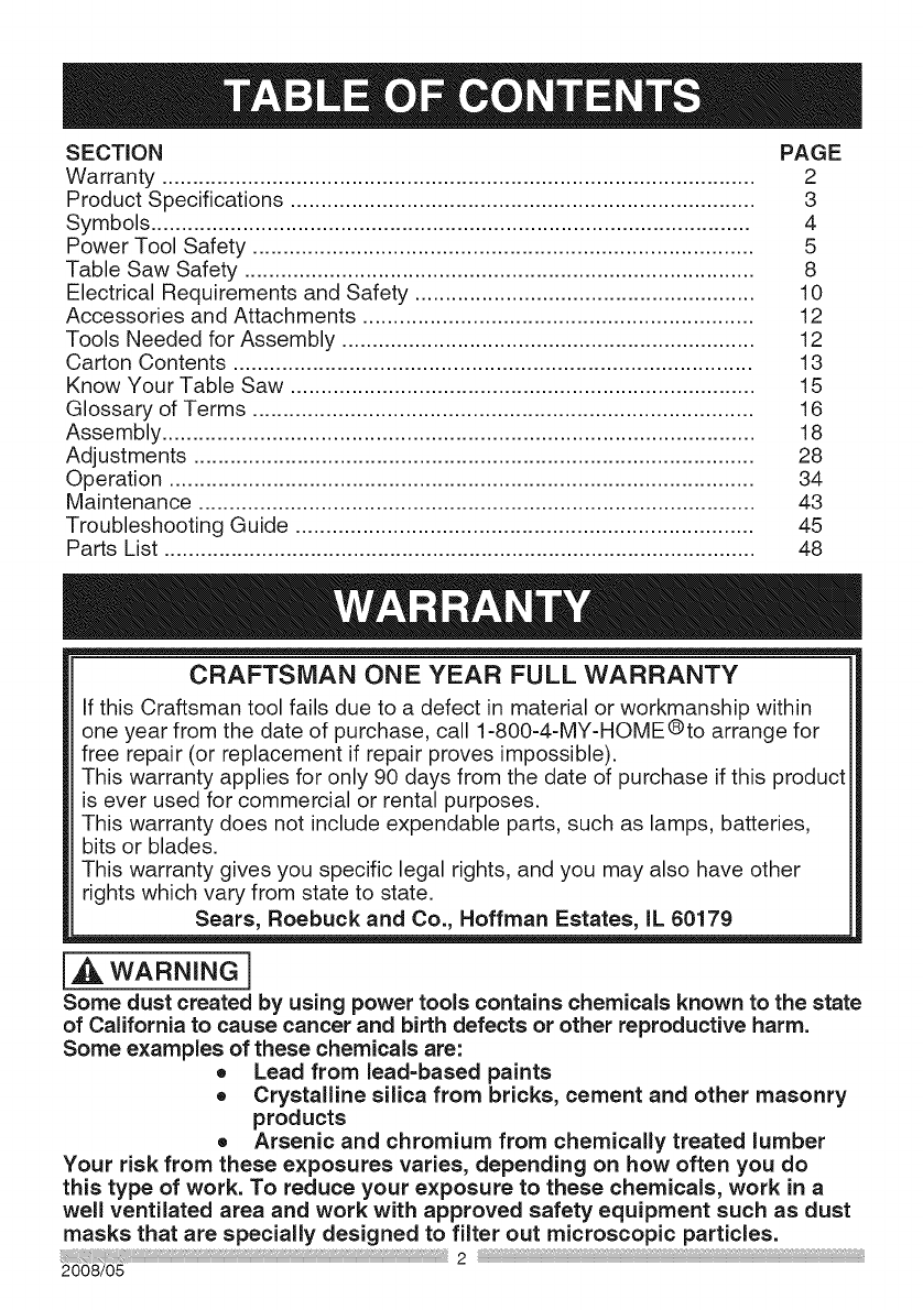 CRAFTSMAN Saw Table Manual L0810542 CRAFTSMAN Saw Table Owner's Manual, CRAFTSMAN Saw Table installation guides