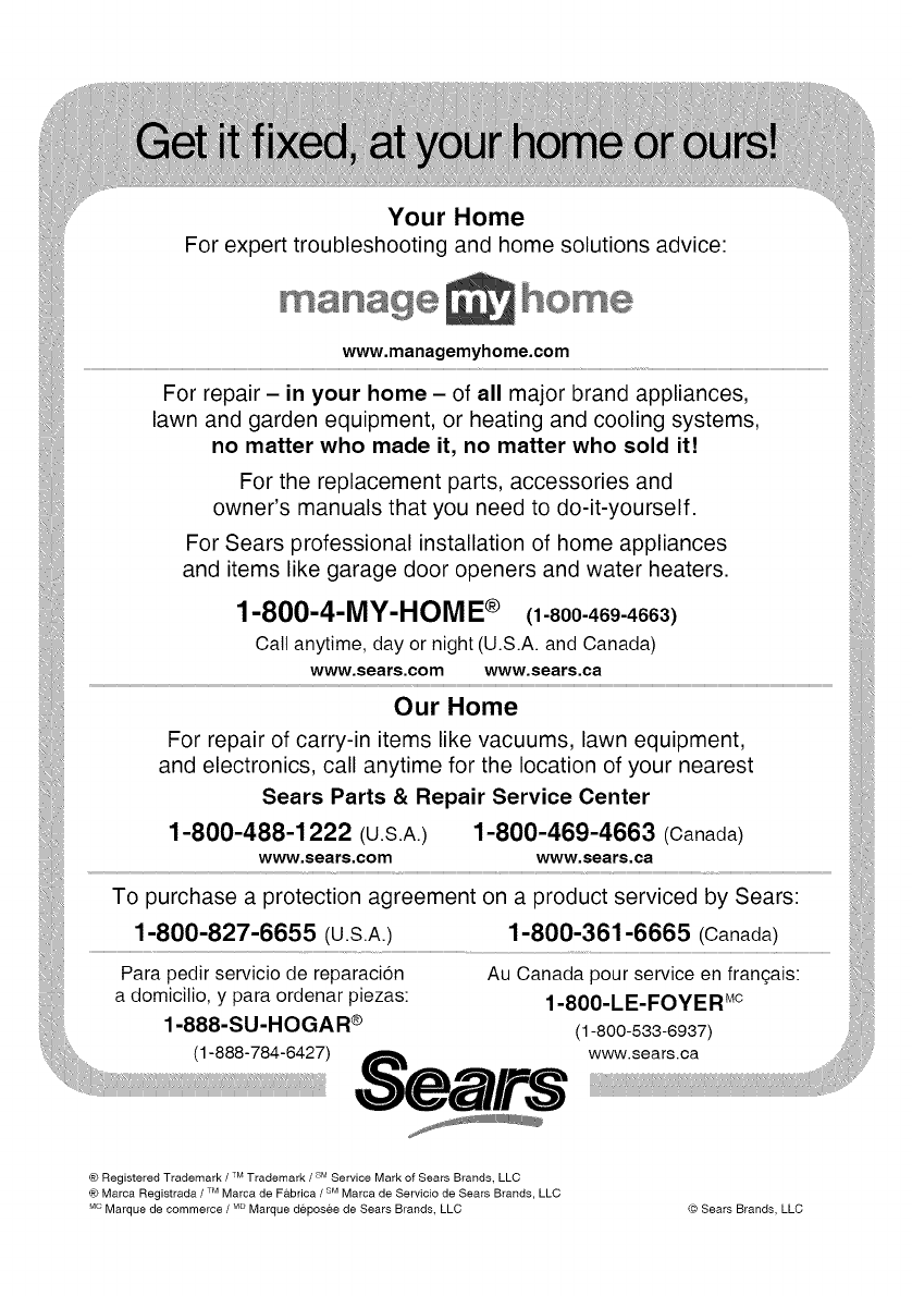 ® Marca Registrada /Marca de F&brica /s Marca de Servicio de Sears Brands, LLC