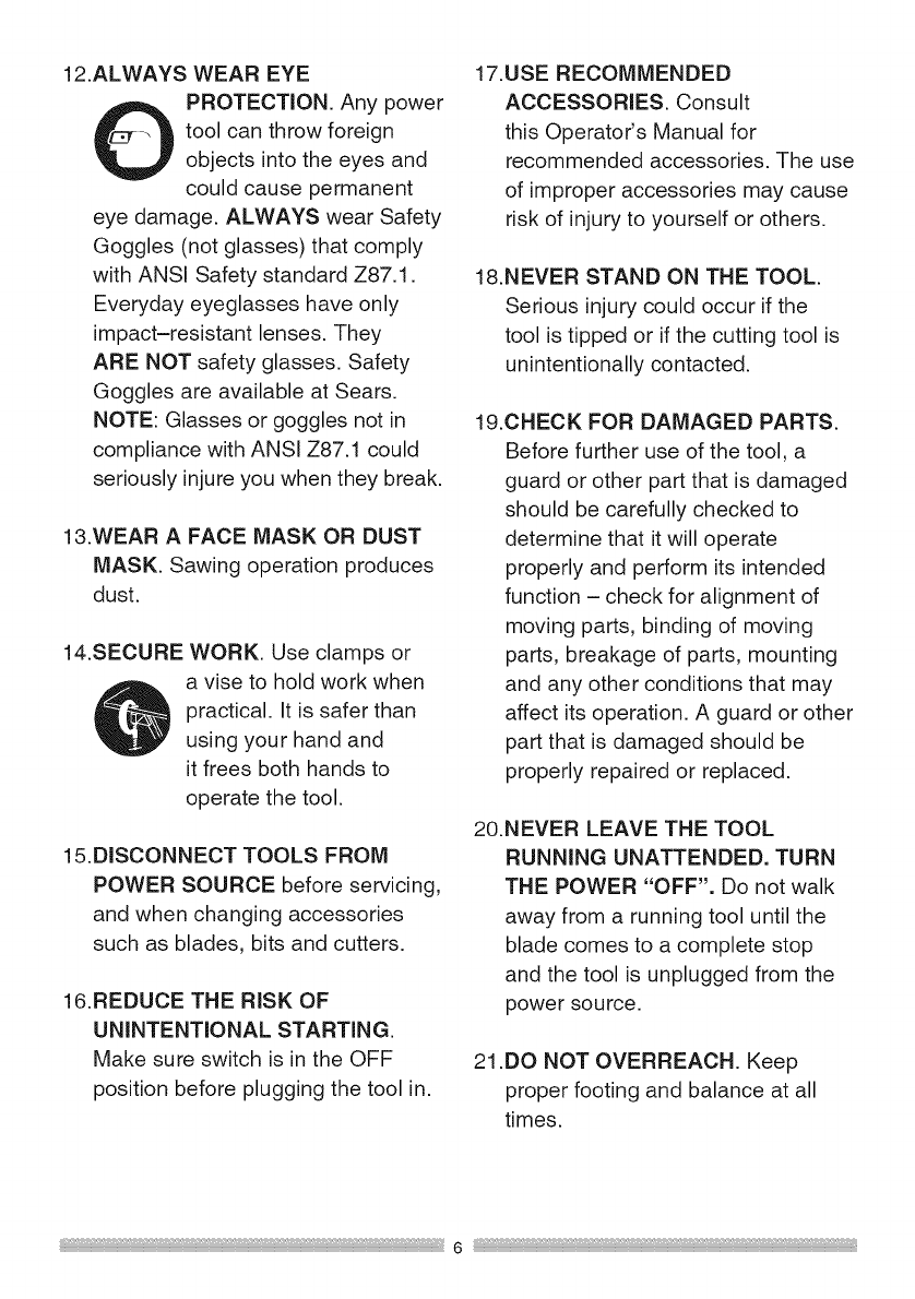 Maximum Cut Depth @ 90° ......................................... 3 in.
