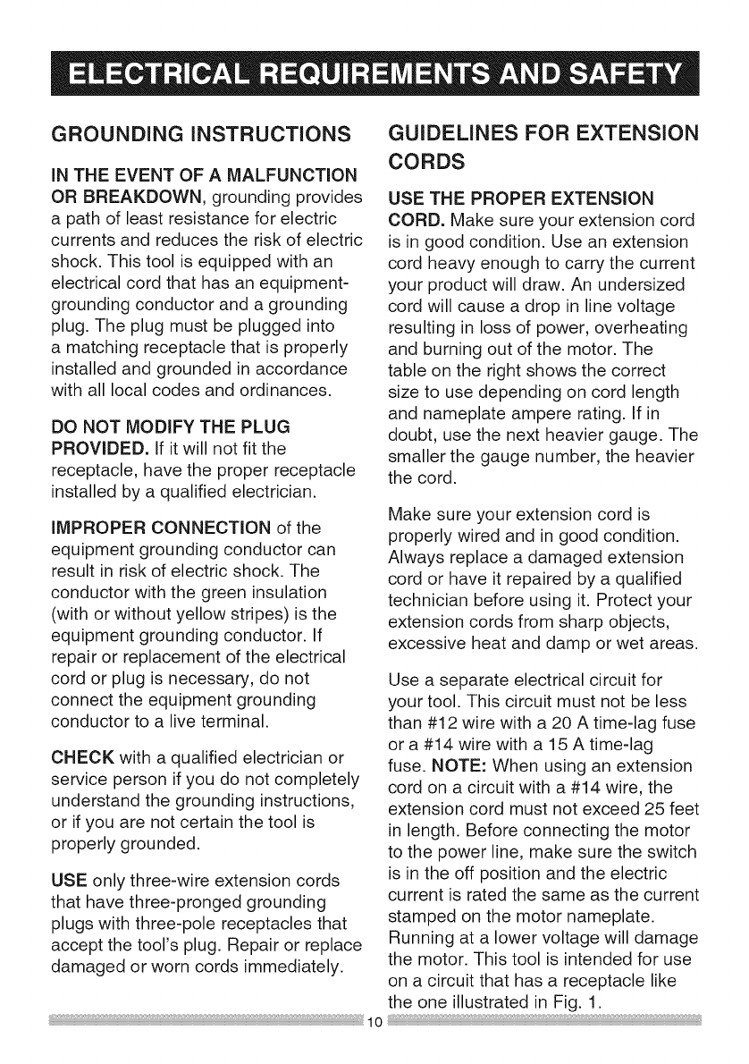 To avoid electrical hazards, fire hazards or damage to the tool, use proper