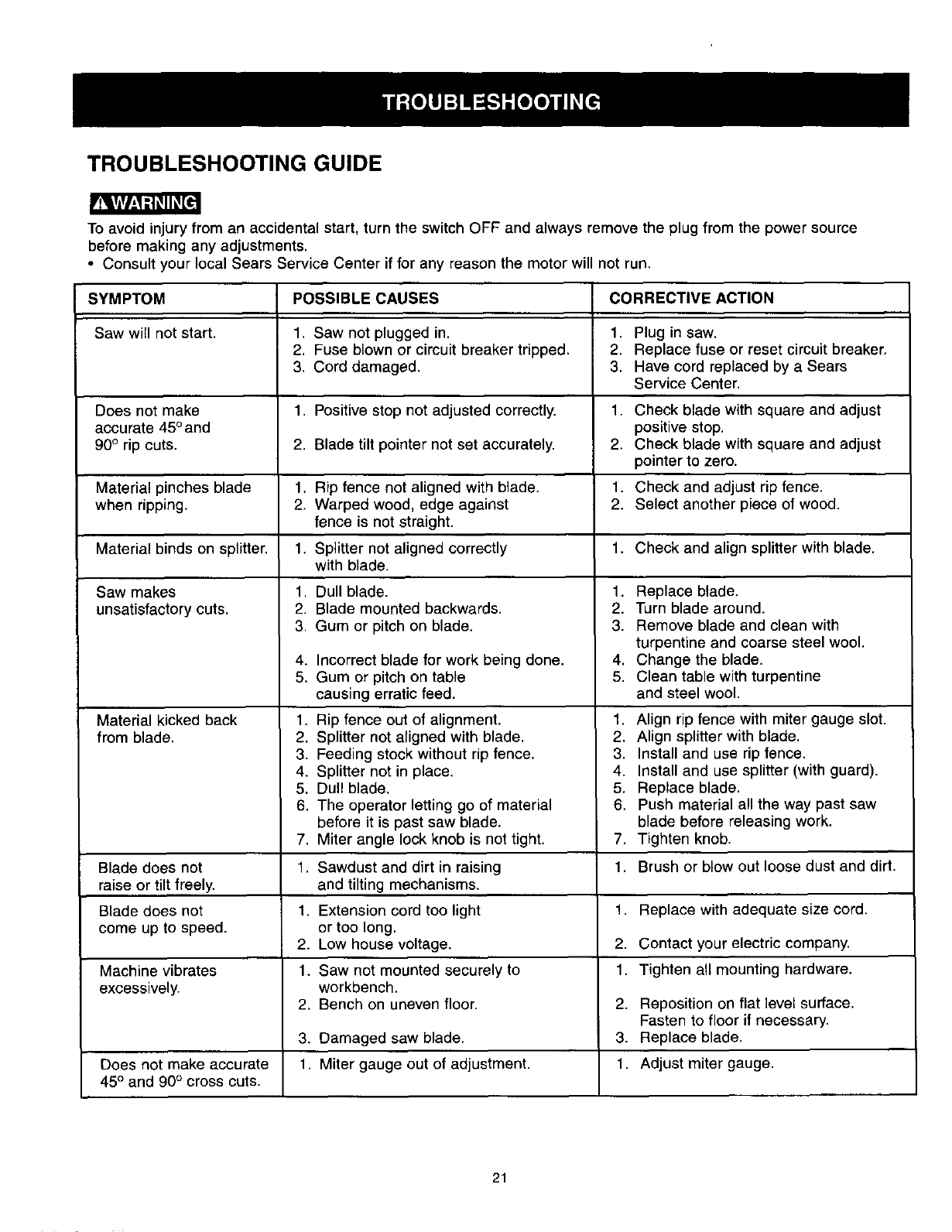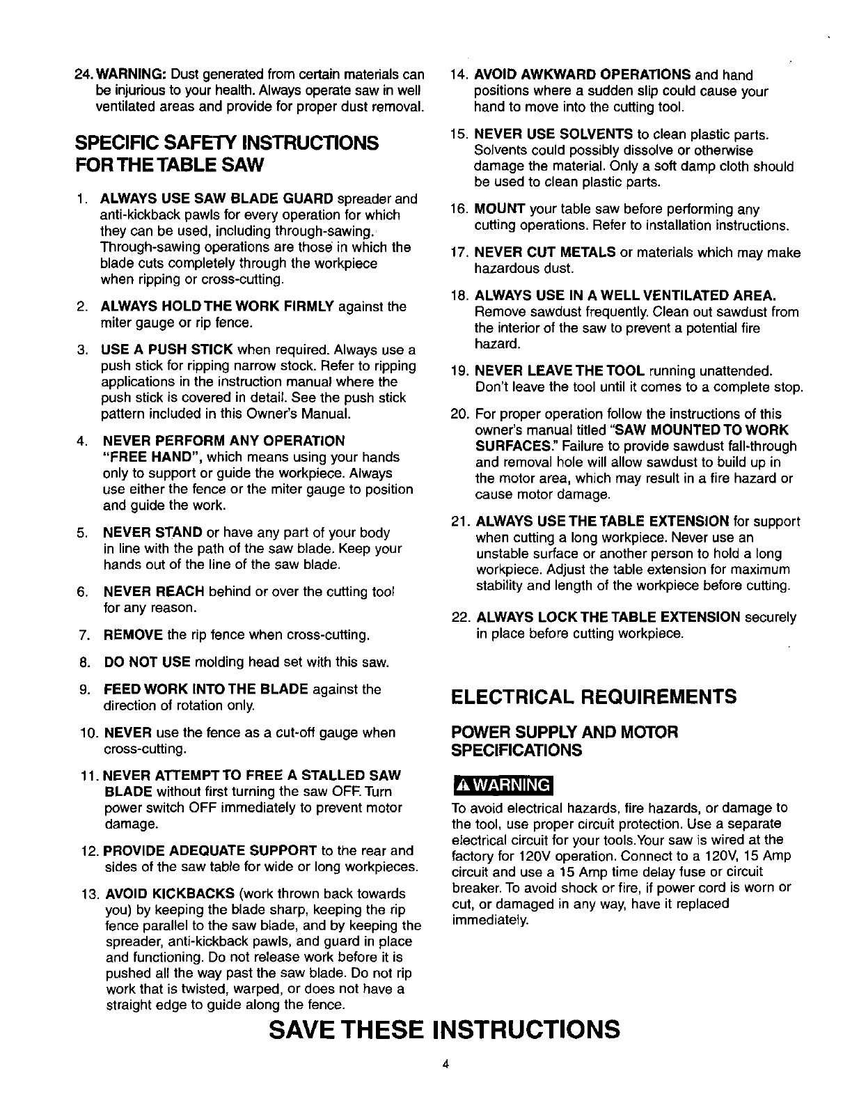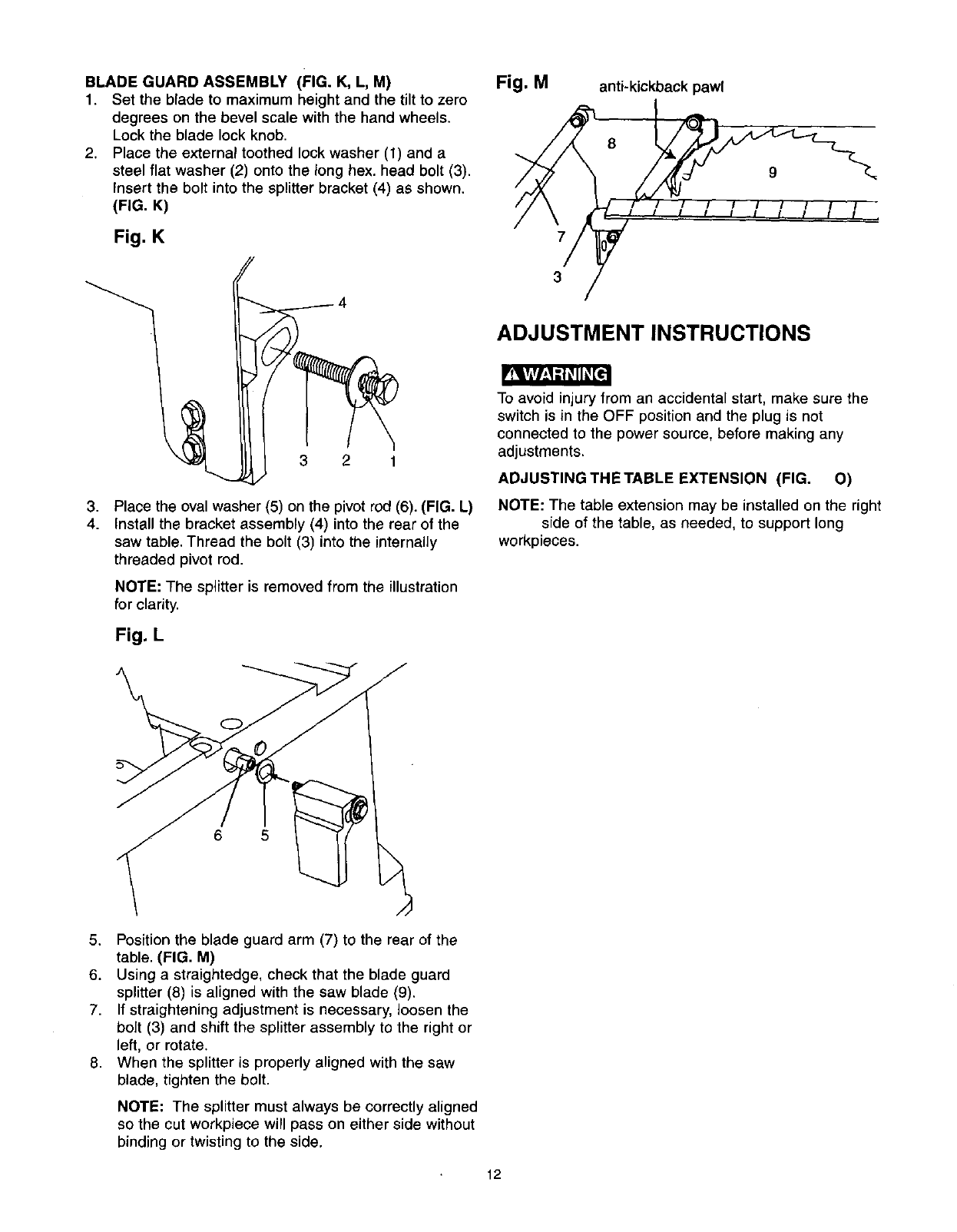 Craftsman 137218250 User Manual TABLE SAW Manuals And Guides L0102027