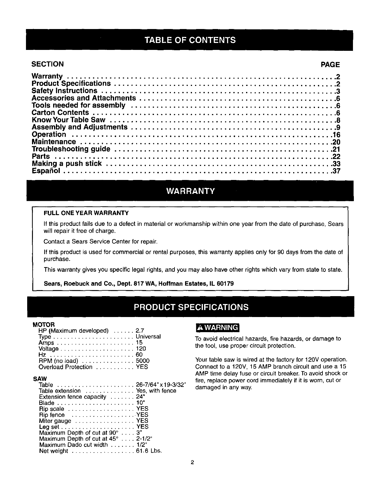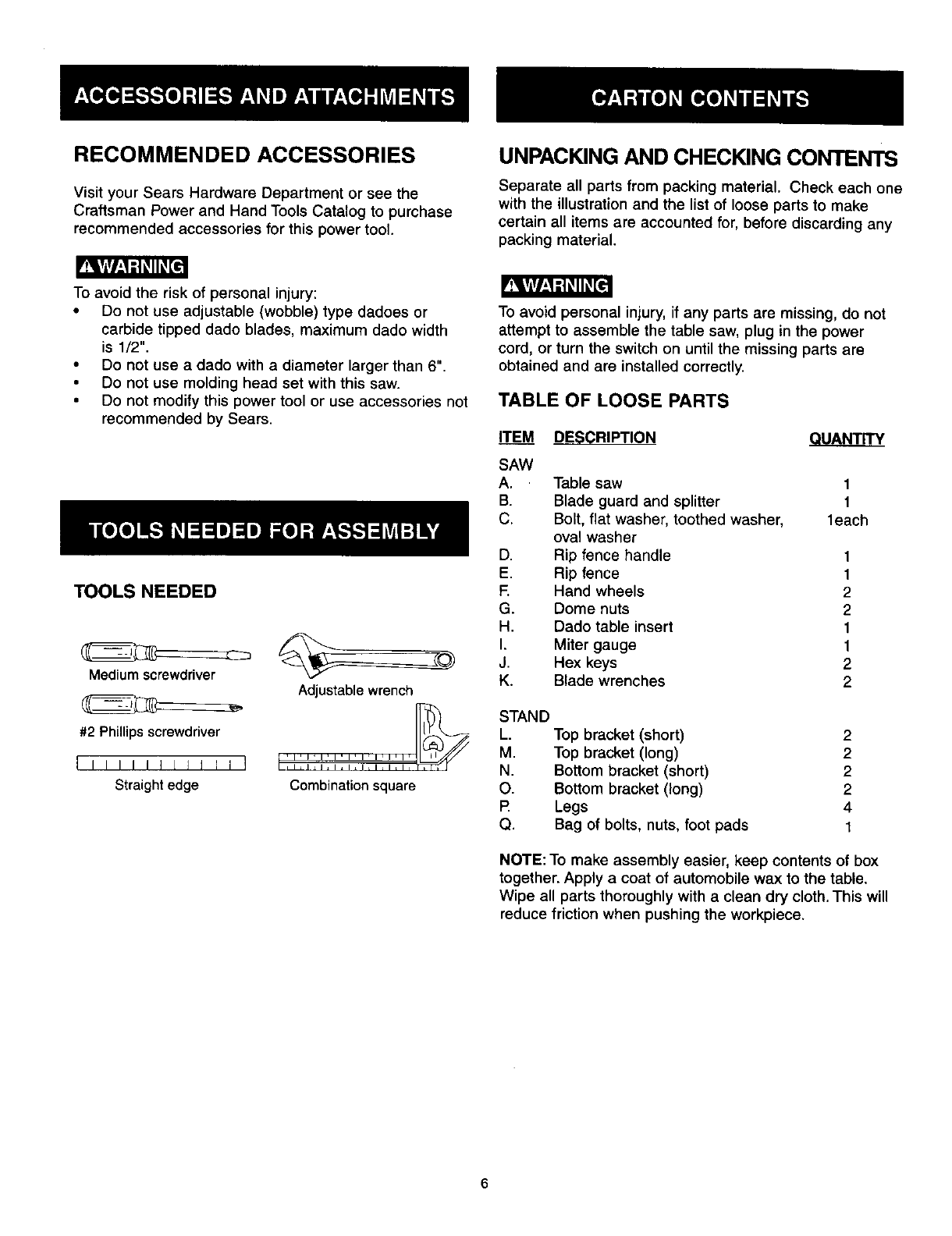 CRAFTSMAN Saw Table Manual L0102027 CRAFTSMAN Saw Table Owner's Manual, CRAFTSMAN Saw Table installation guides