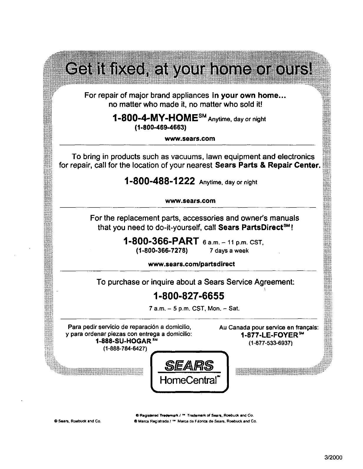 for repair, call for the location of your nearest Sears Parts & Repair Center. !!!!_!i!i!!