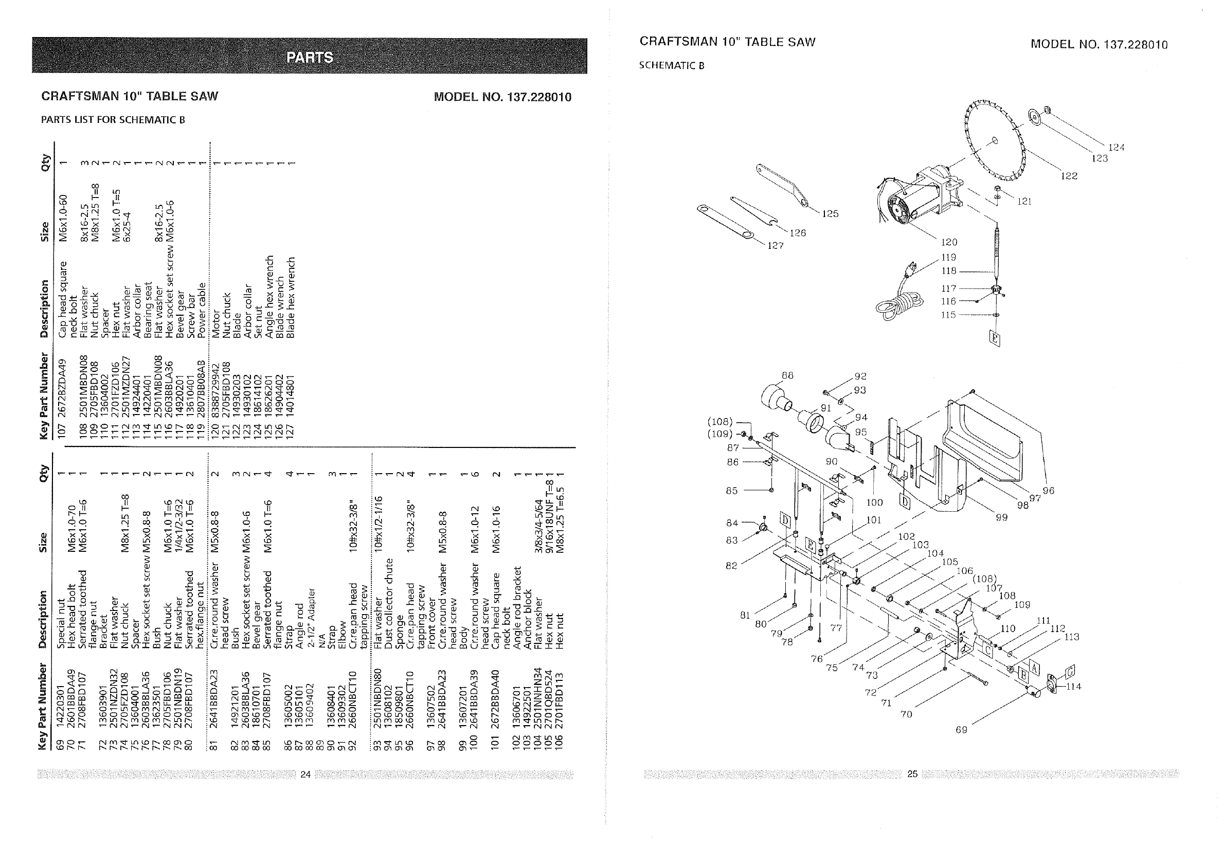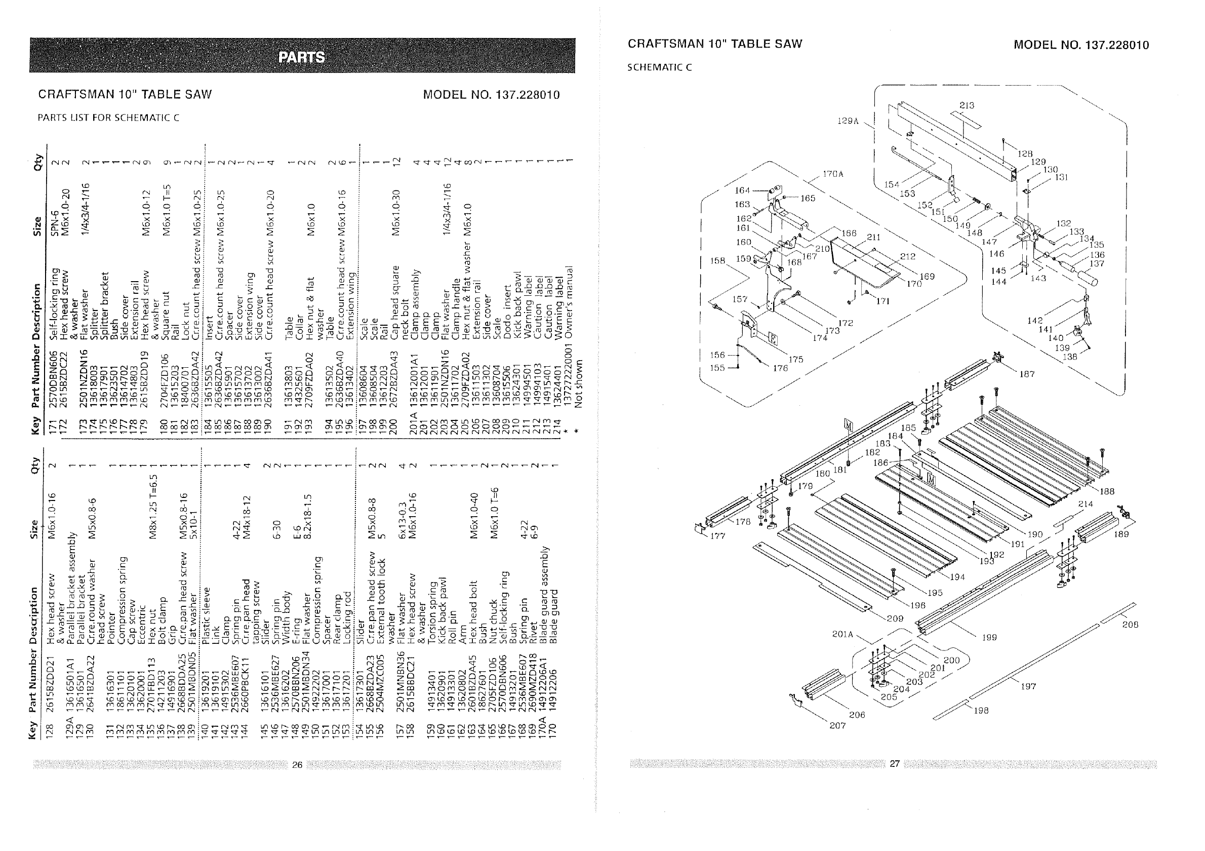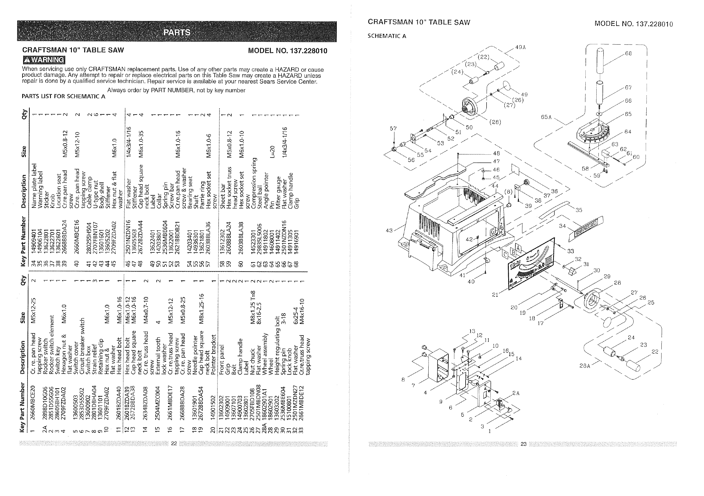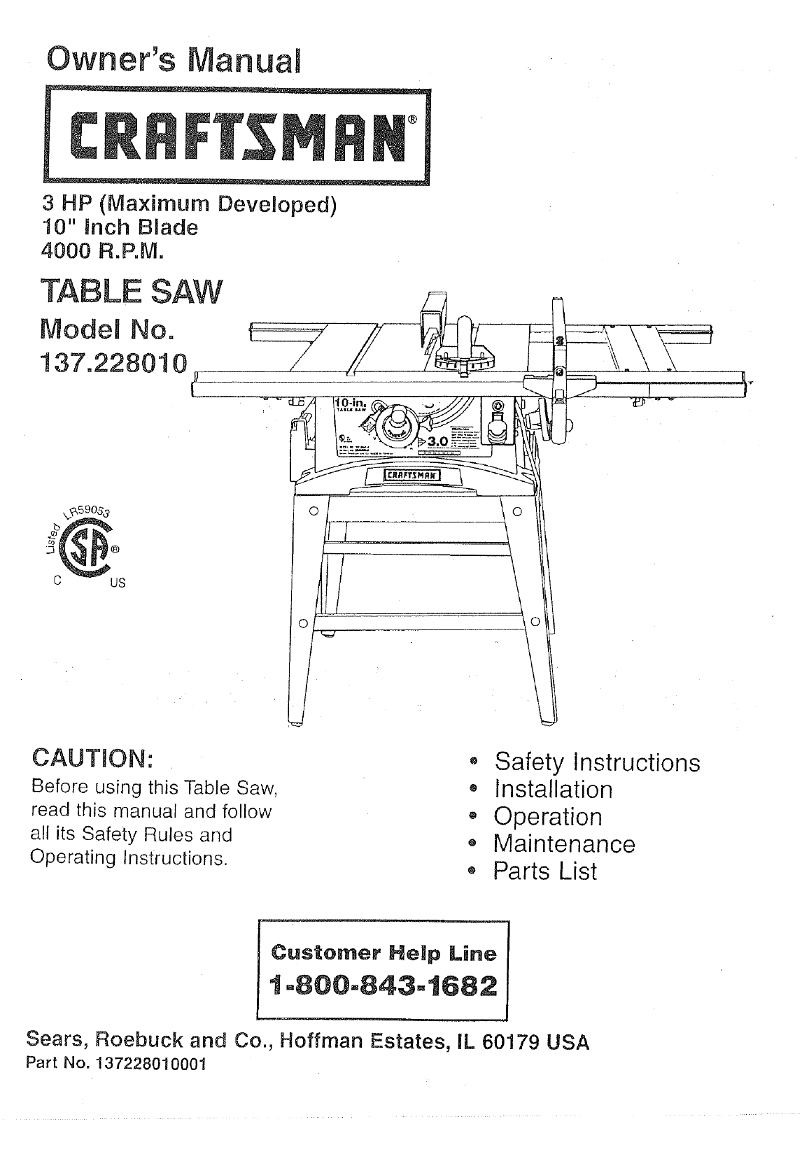 User Manual: Craftsman 137228010 137228010 CRAFTSMAN TABLE SAW - Manuals and Guides View the owners manual for your CRAFTSMAN TABLE SAW #137228010. Home:Tool Parts:Craftsman Parts:Craftsman TABLE SAW Manual