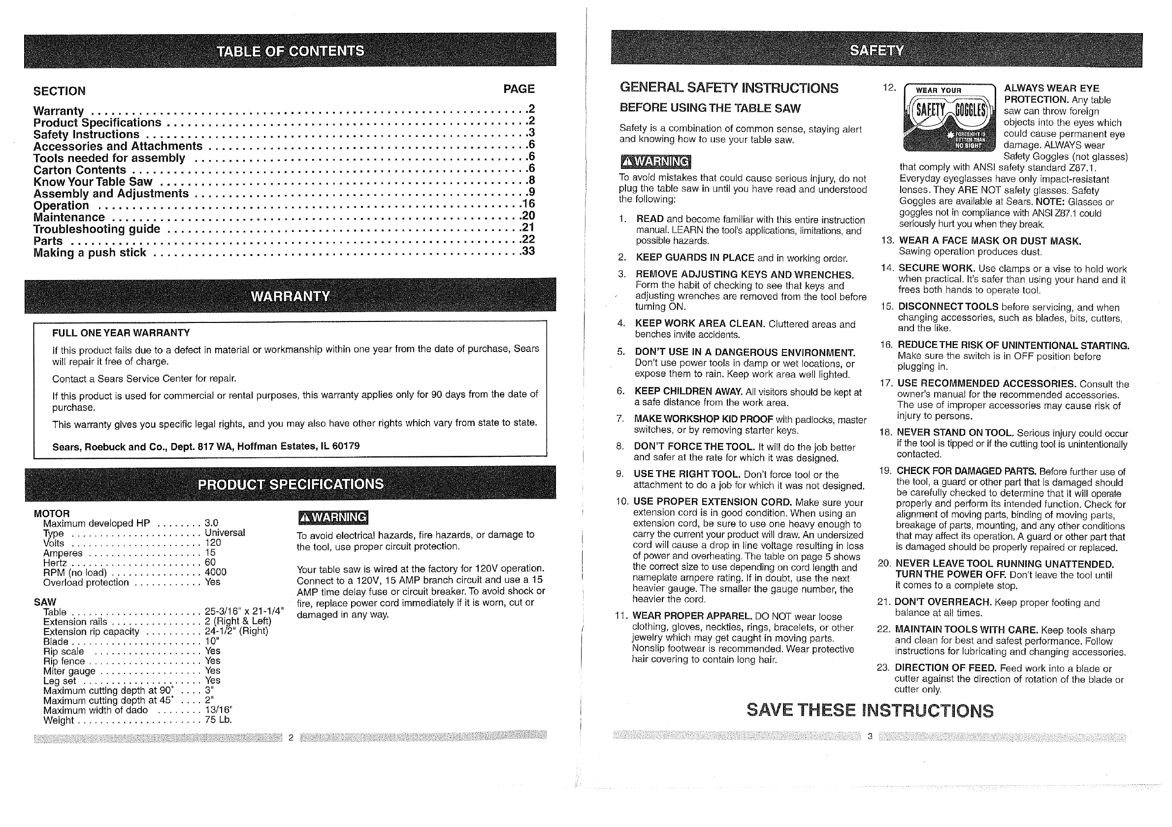 Before using this Table Saw,