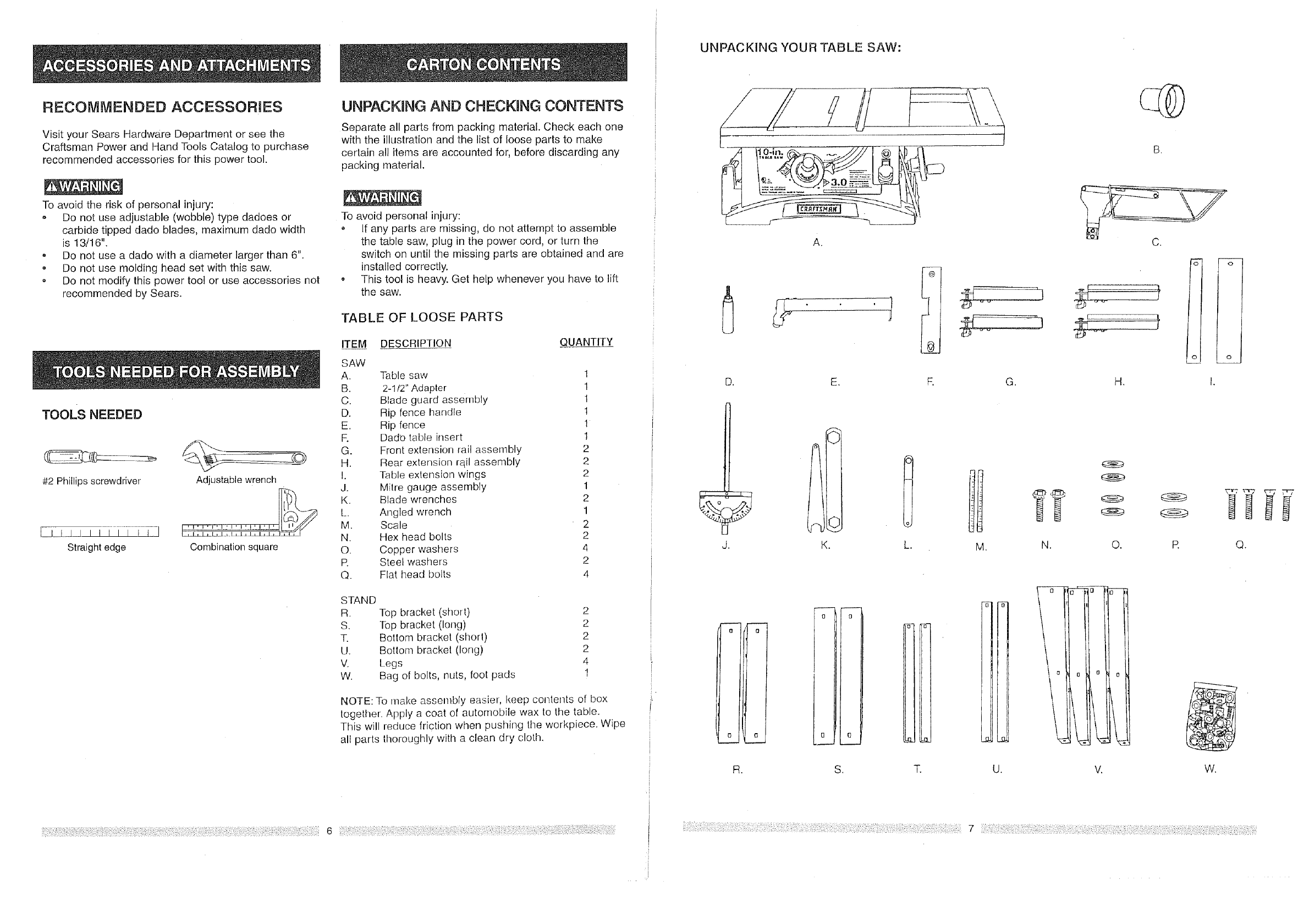 CRAFTSMAN Saw Table Manual L0803292 CRAFTSMAN Saw Table Owner's Manual, CRAFTSMAN Saw Table installation guides