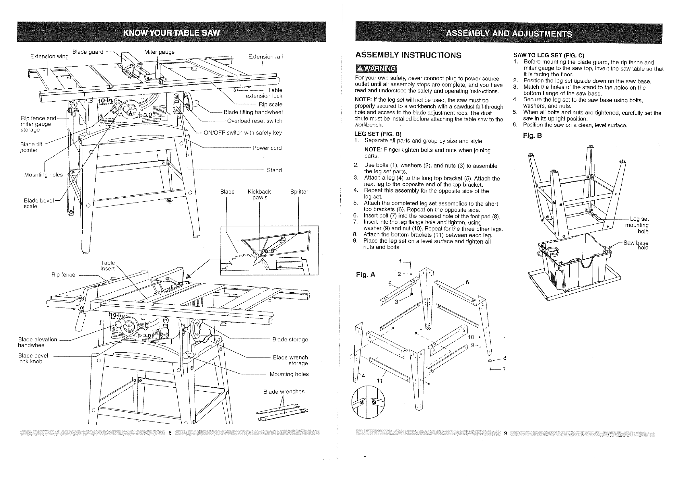 Know Your Table Saw ...................................................... 8