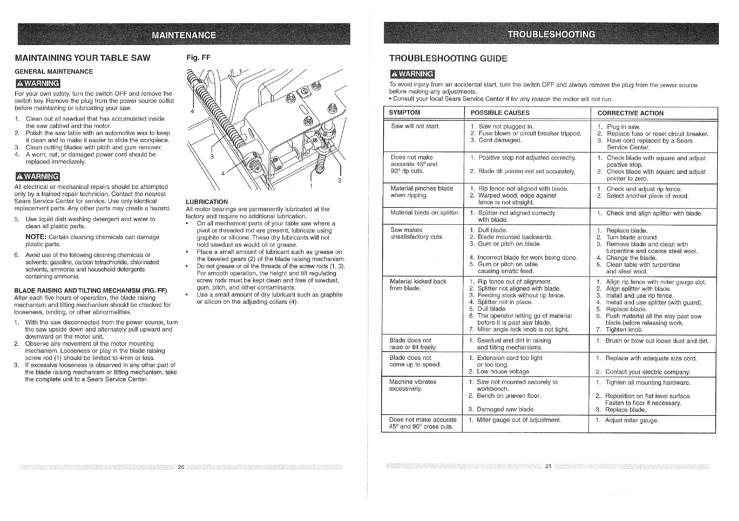 Craftsman 137228010 User Manual TABLE SAW Manuals And Guides L0803292