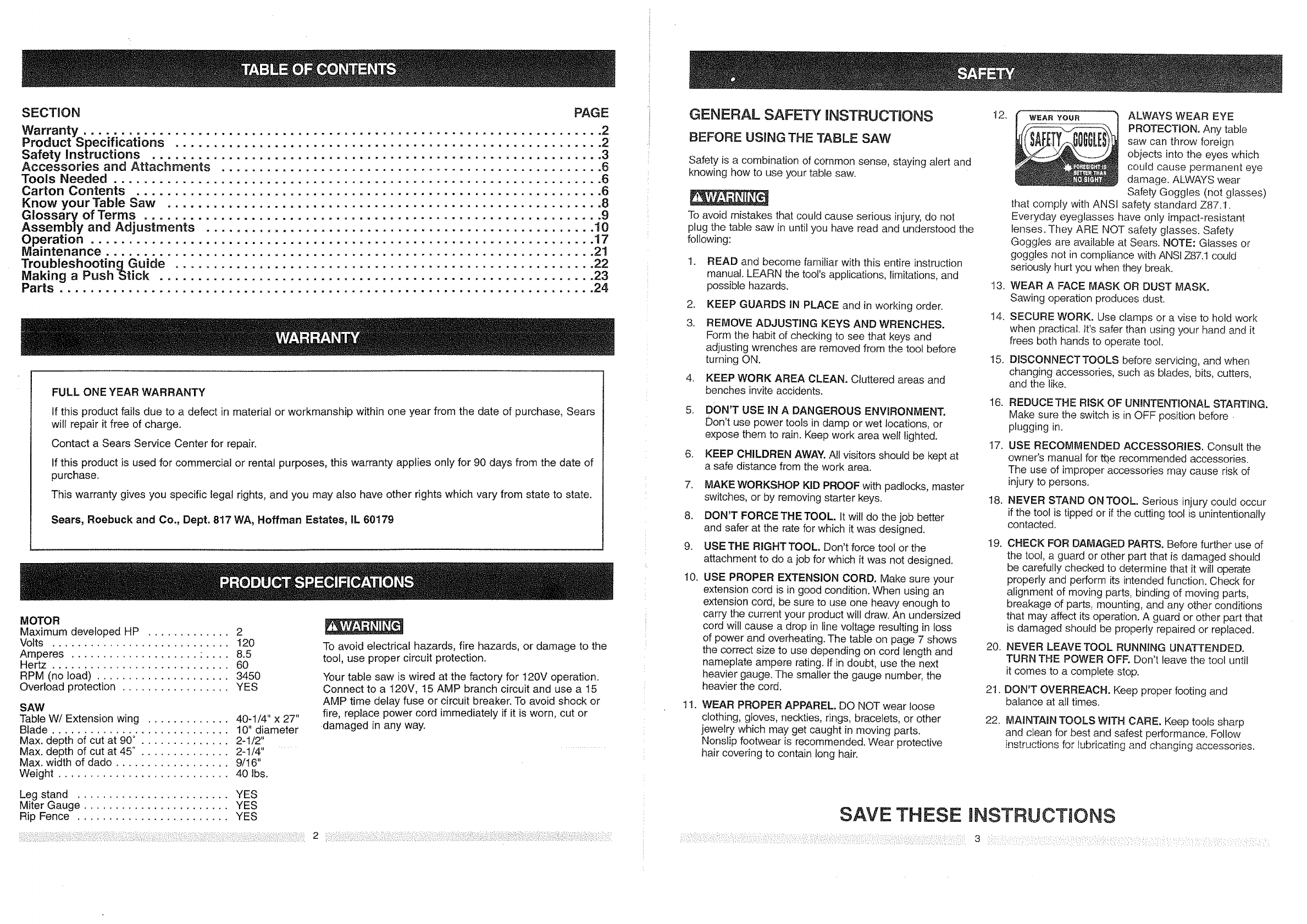 Craftsman 137228210 User Manual TABLE SAW Manuals And Guides L0810027
