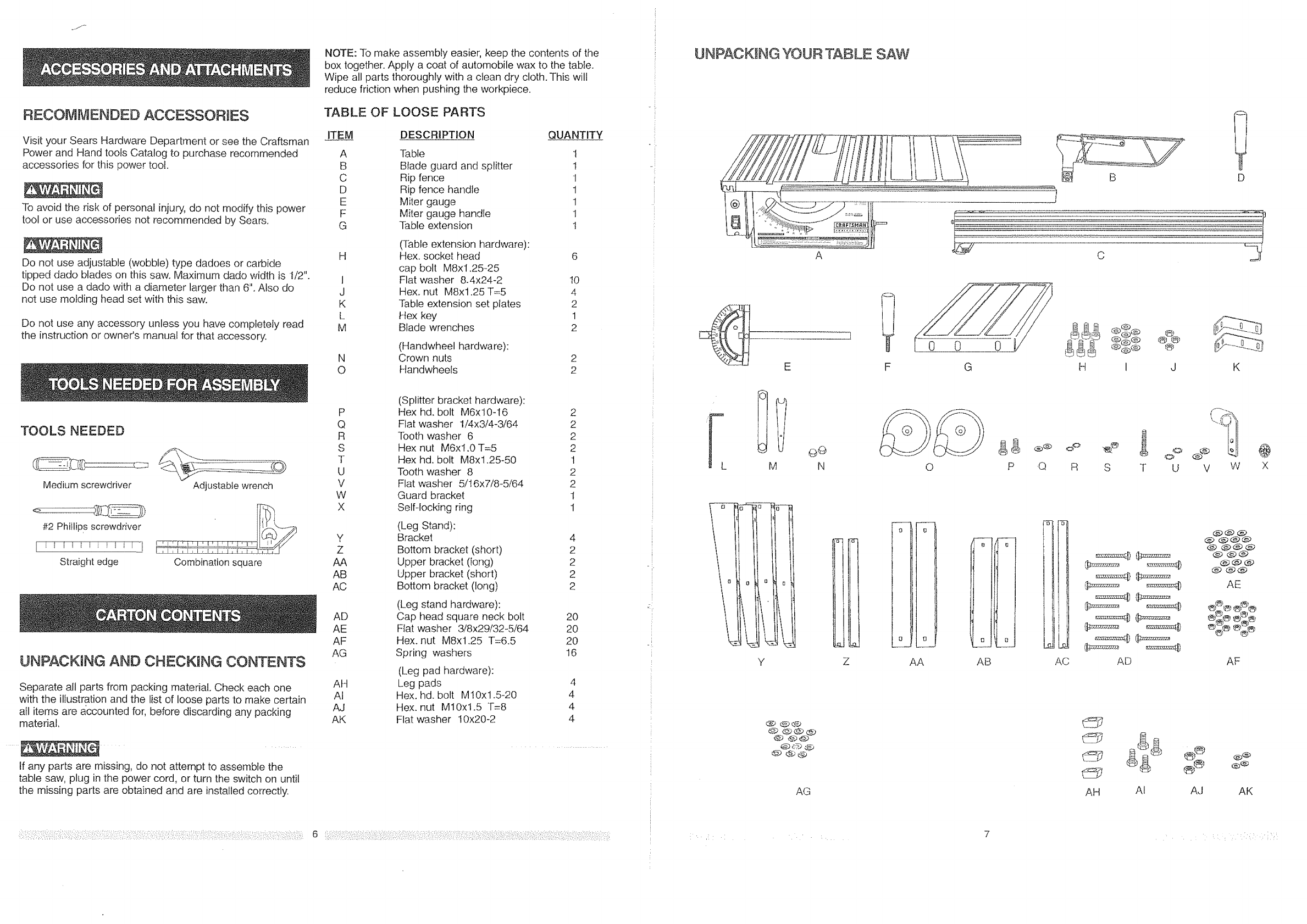 CRAFTSMAN Saw Table Manual L0810027 CRAFTSMAN Saw Table Owner's Manual, CRAFTSMAN Saw Table installation guides