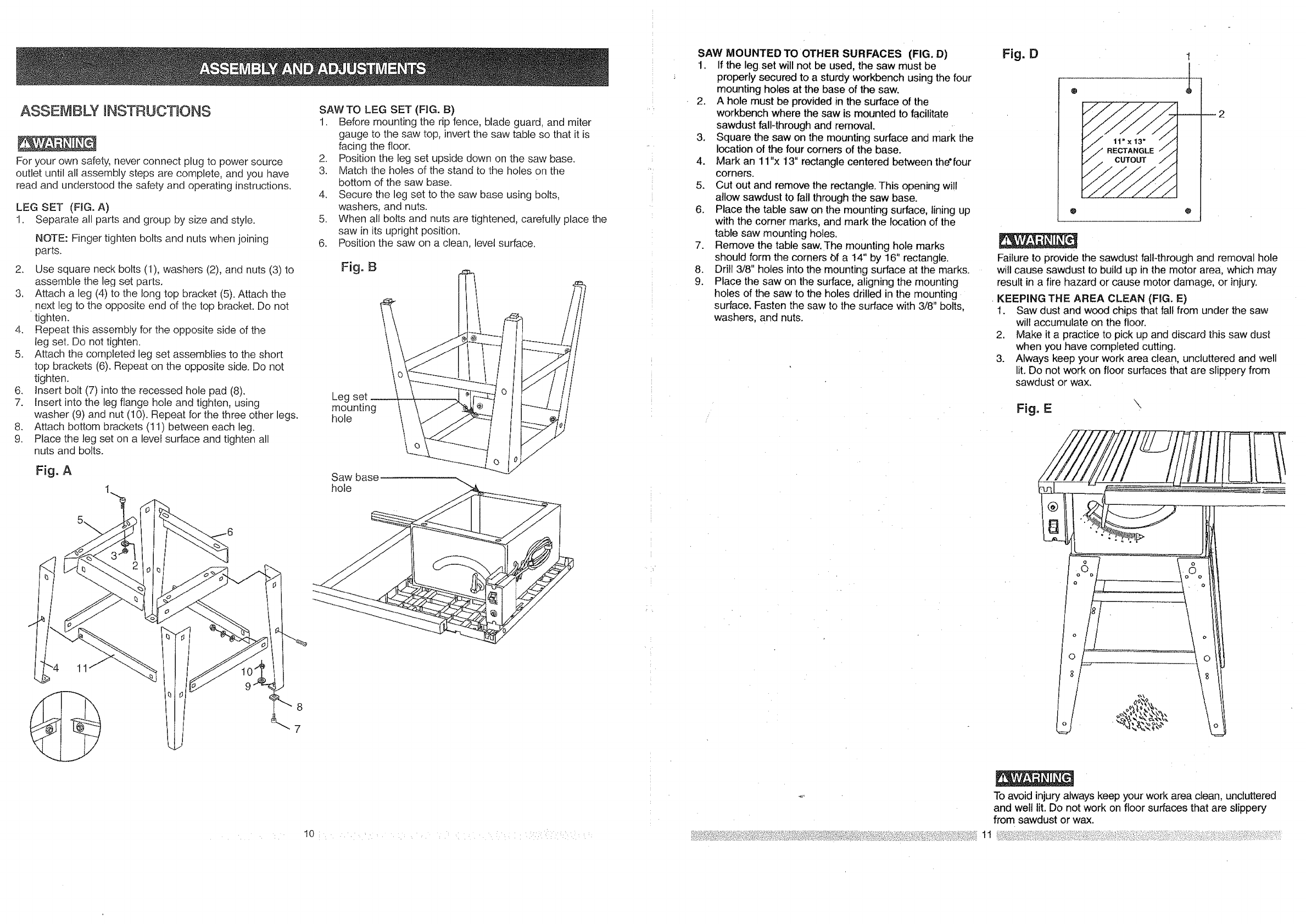 KEEP WORK AREA CLEAN. Cluttered areas and