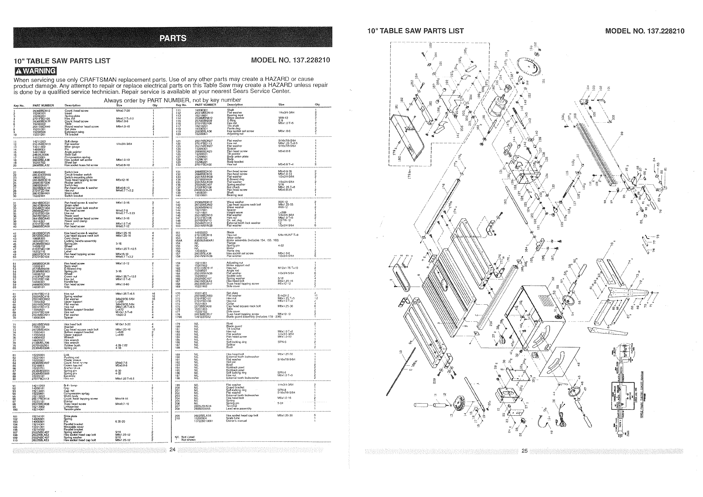 User Manual: Craftsman 137228210 137228210 CRAFTSMAN TABLE SAW - Manuals and Guides View the owners manual for your CRAFTSMAN TABLE SAW #137228210. Home:Tool Parts:Craftsman Parts:Craftsman TABLE SAW Manual