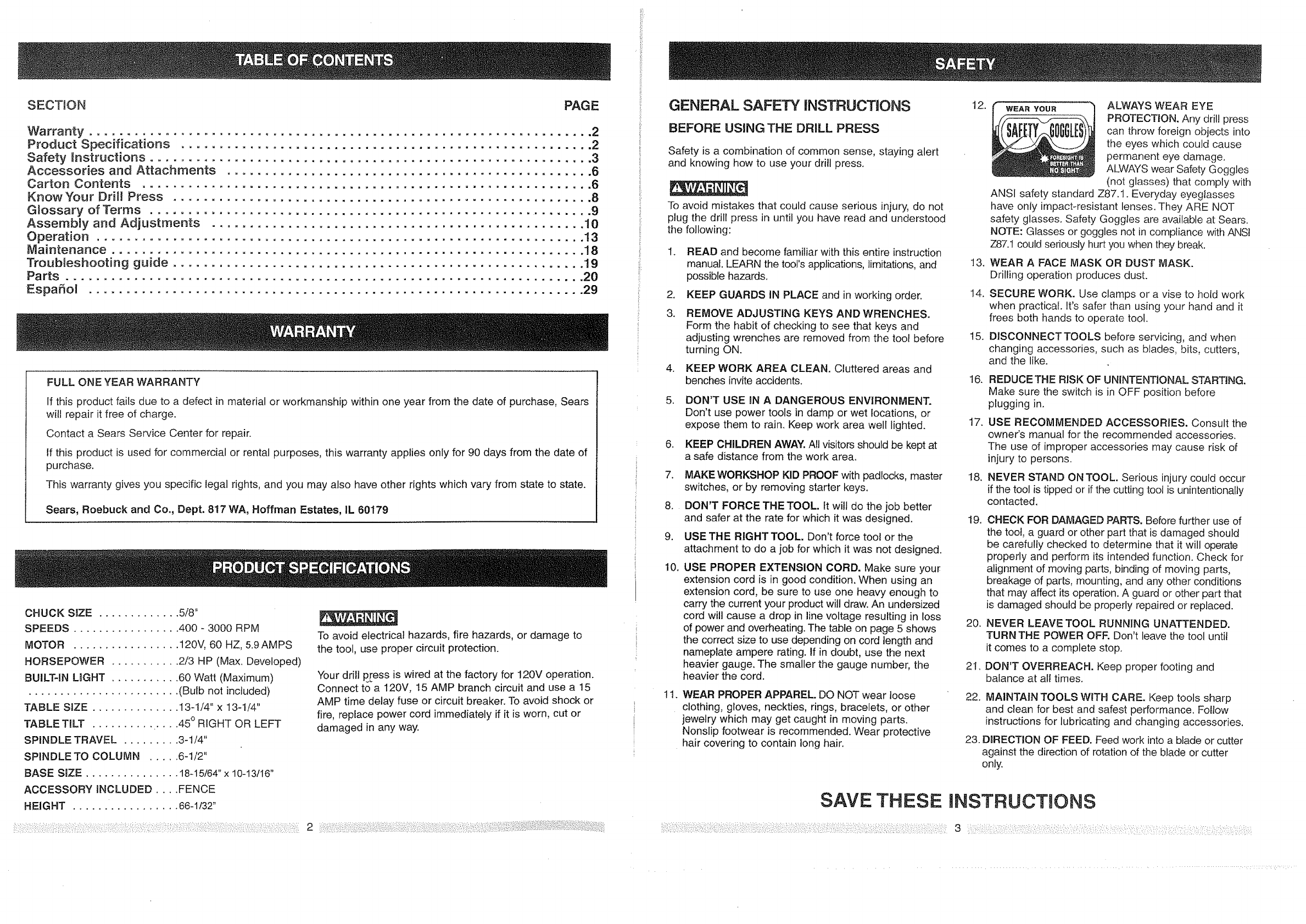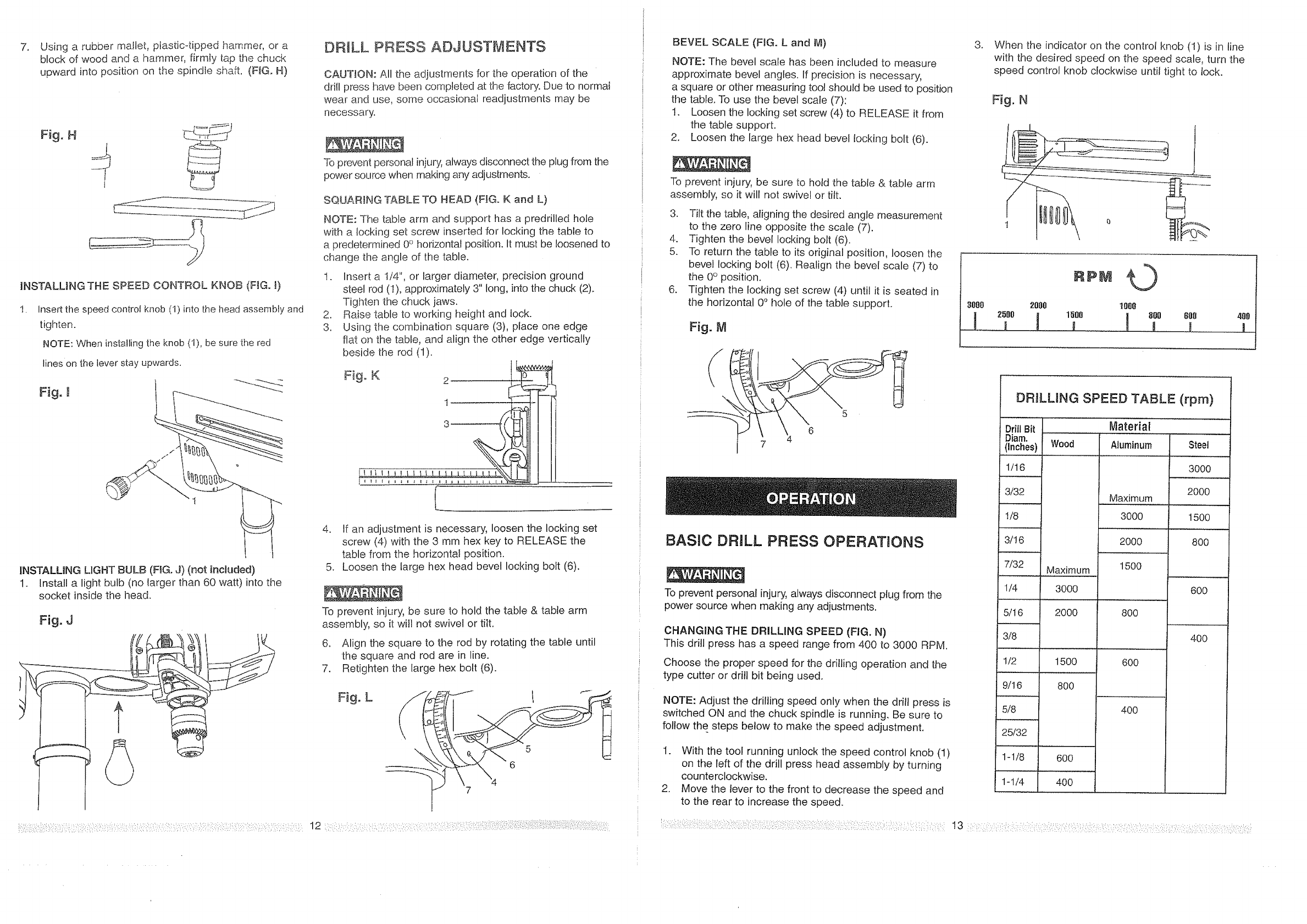 Craftsman 137229130 User Manual DRILL PRESS Manuals And Guides 1010569L