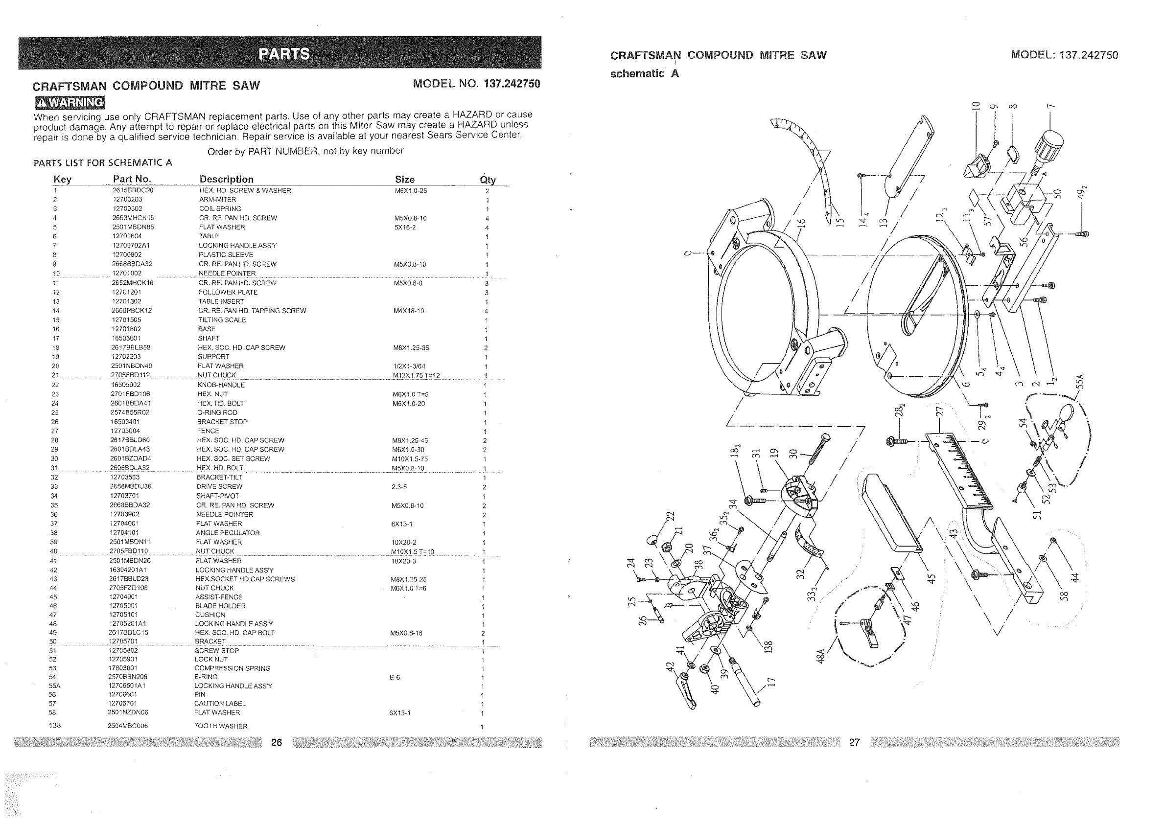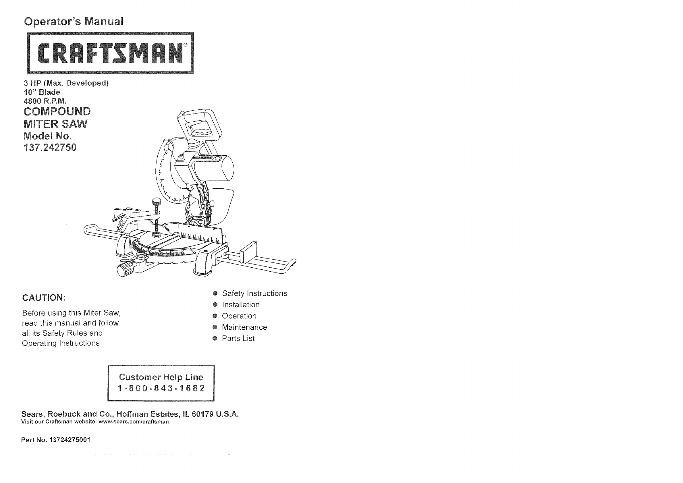 User Manual: Craftsman 137242750 137242750 CRAFTSMAN SAW - Manuals and Guides View the owners manual for your CRAFTSMAN SAW #137242750. Home:Tool Parts:Craftsman Parts:Craftsman SAW Manual