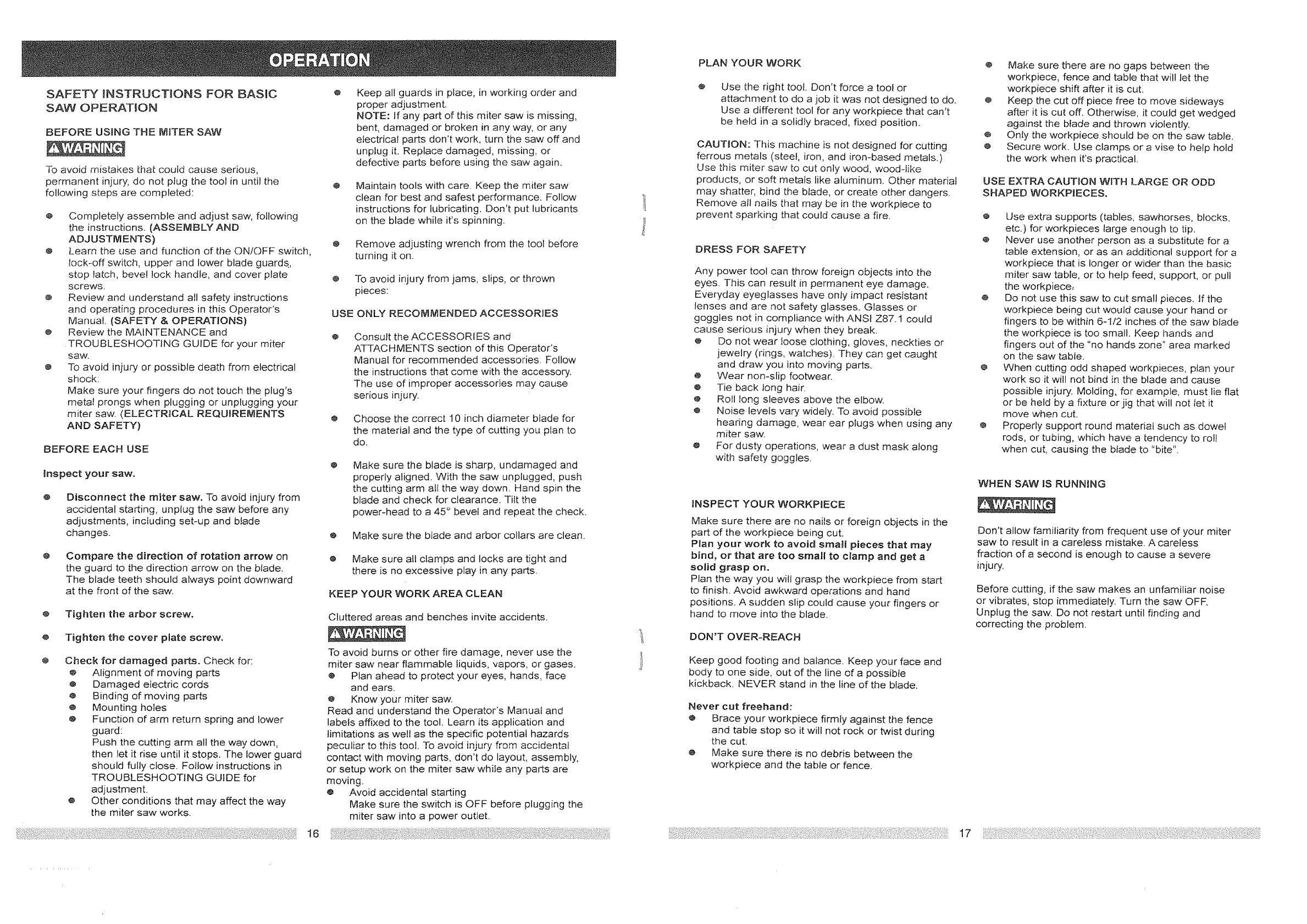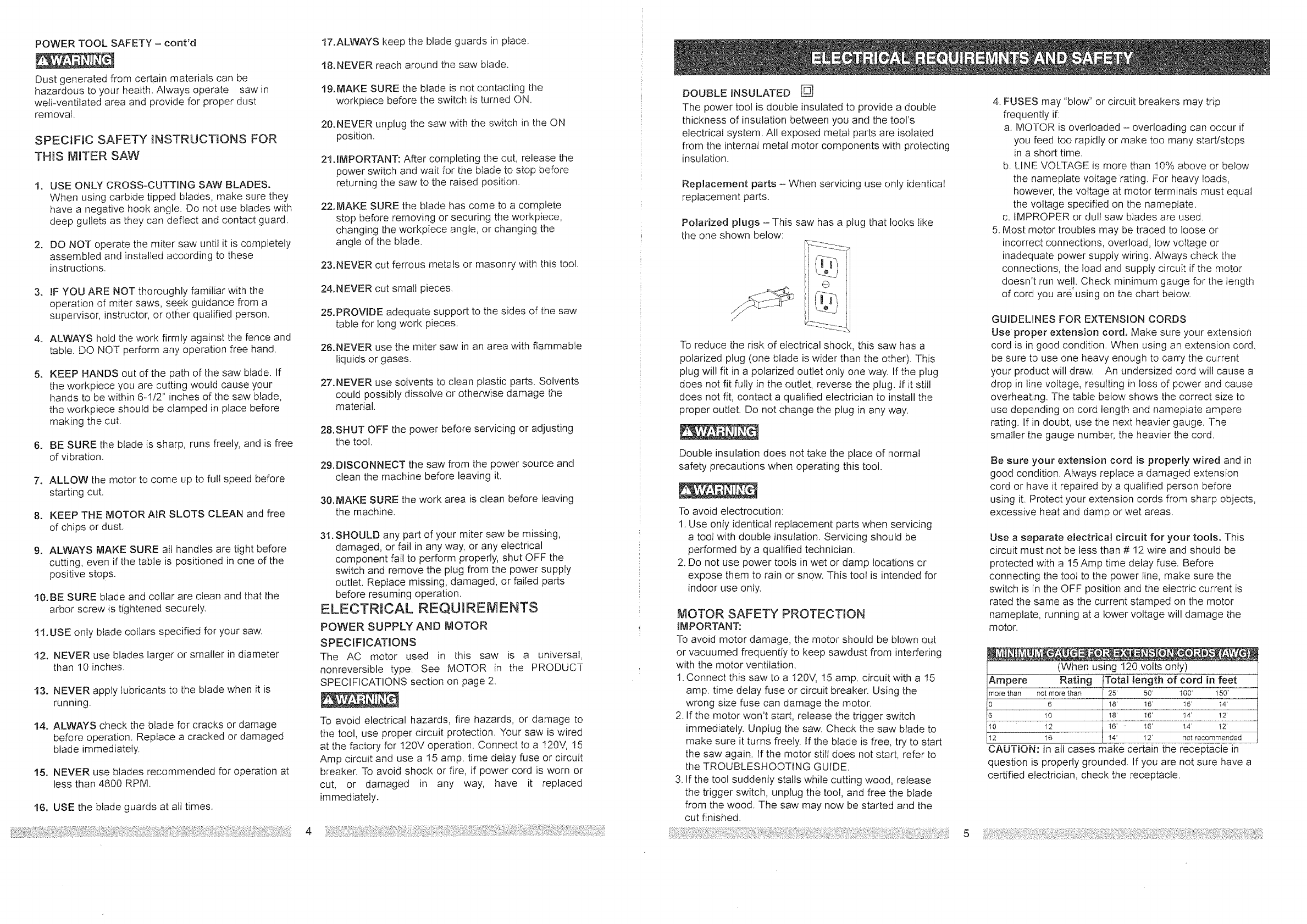 Compound Miter Saw Safety ............... 4