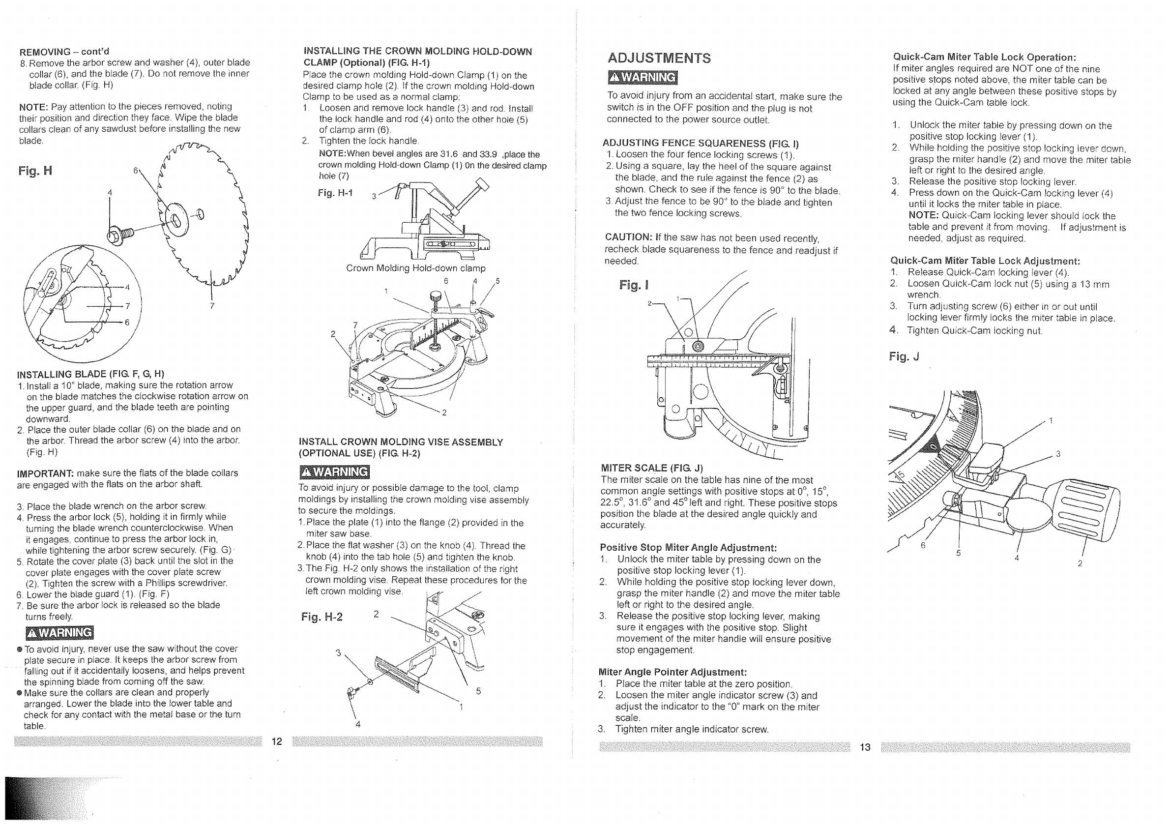 Miter Detent Stops .................. 0, 15, 22-1t2, 31.6,