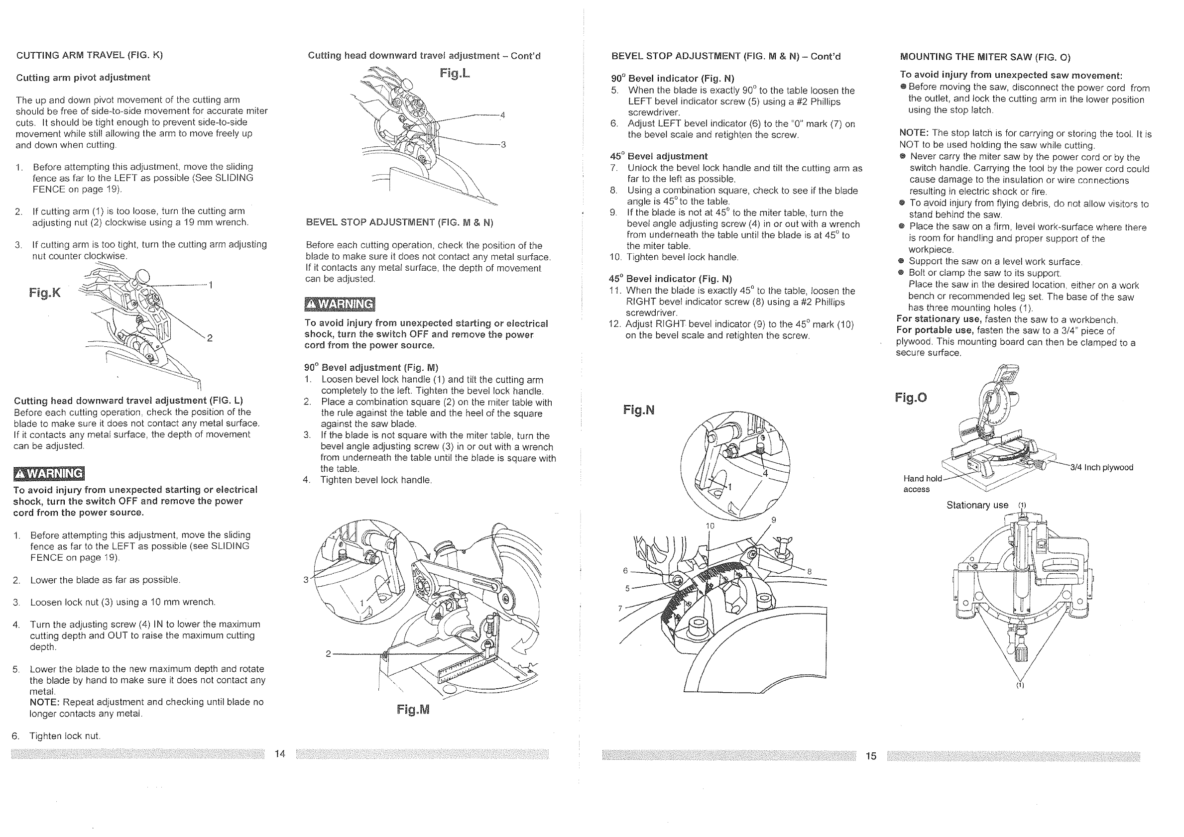Bevel Positive Stops ............... 0, 45°