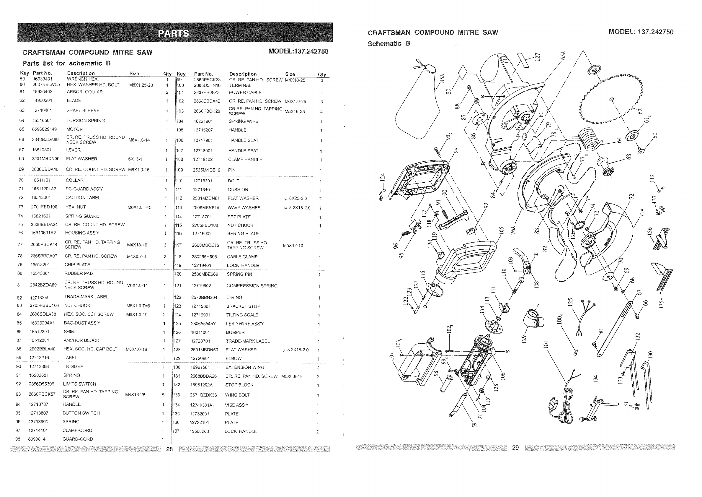 CRAFTSMAN COMPOUND NtnTRE SAW MODEL: 137.242750