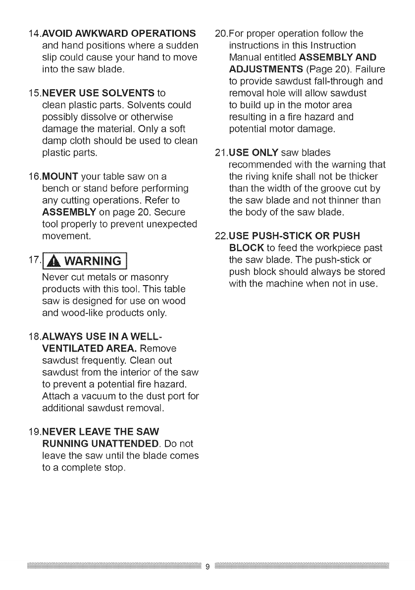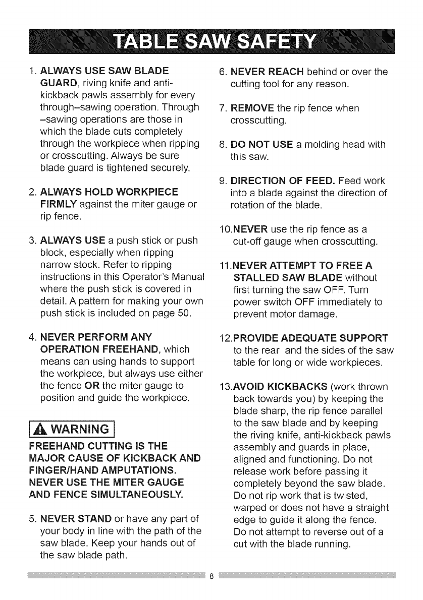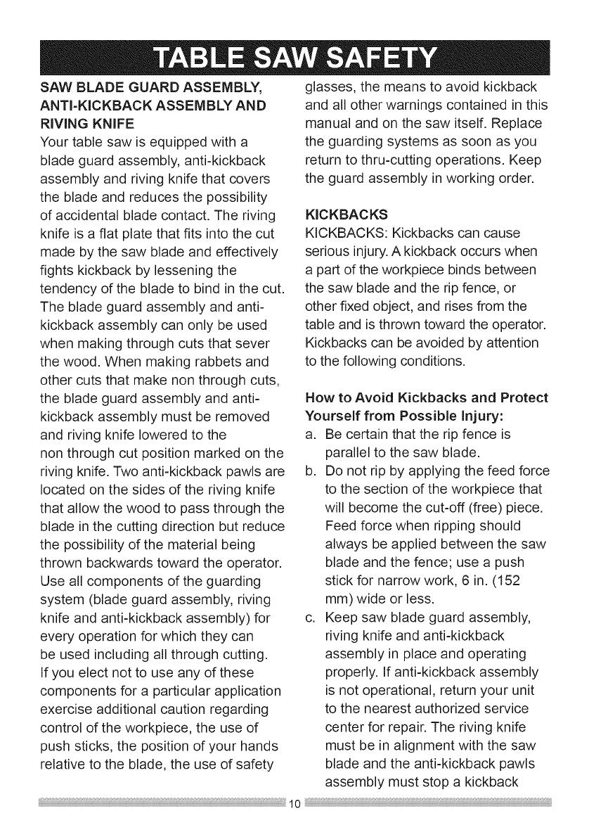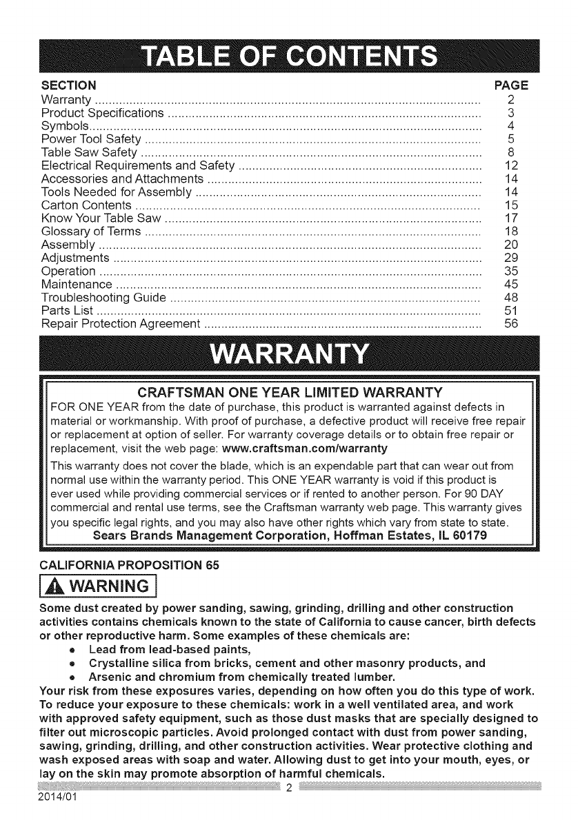 Craftsman 137415030 User Manual TABLE SAW Manuals And Guides 1402281L