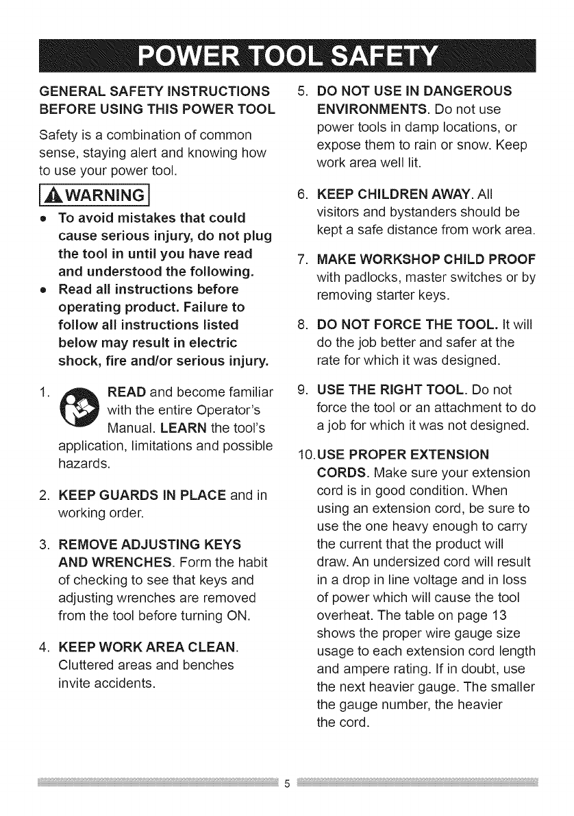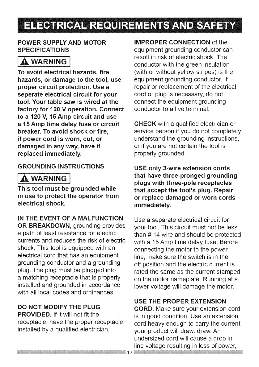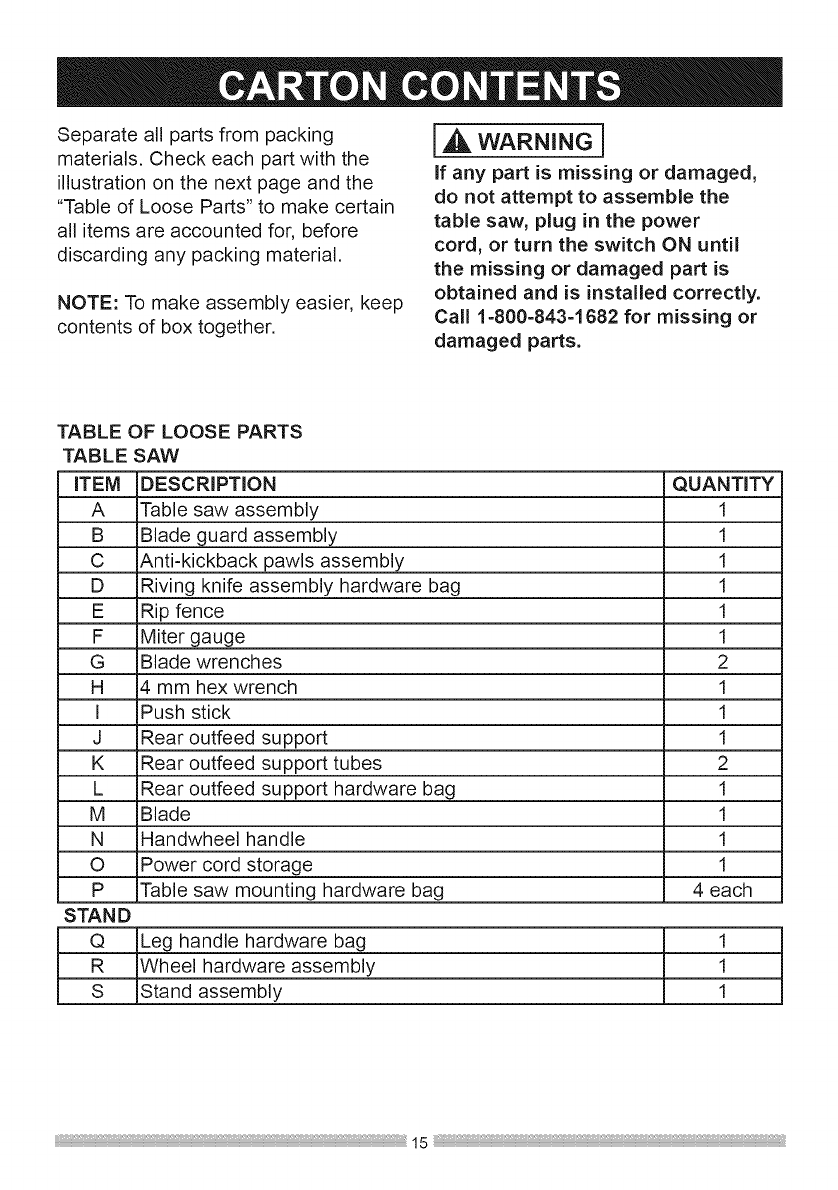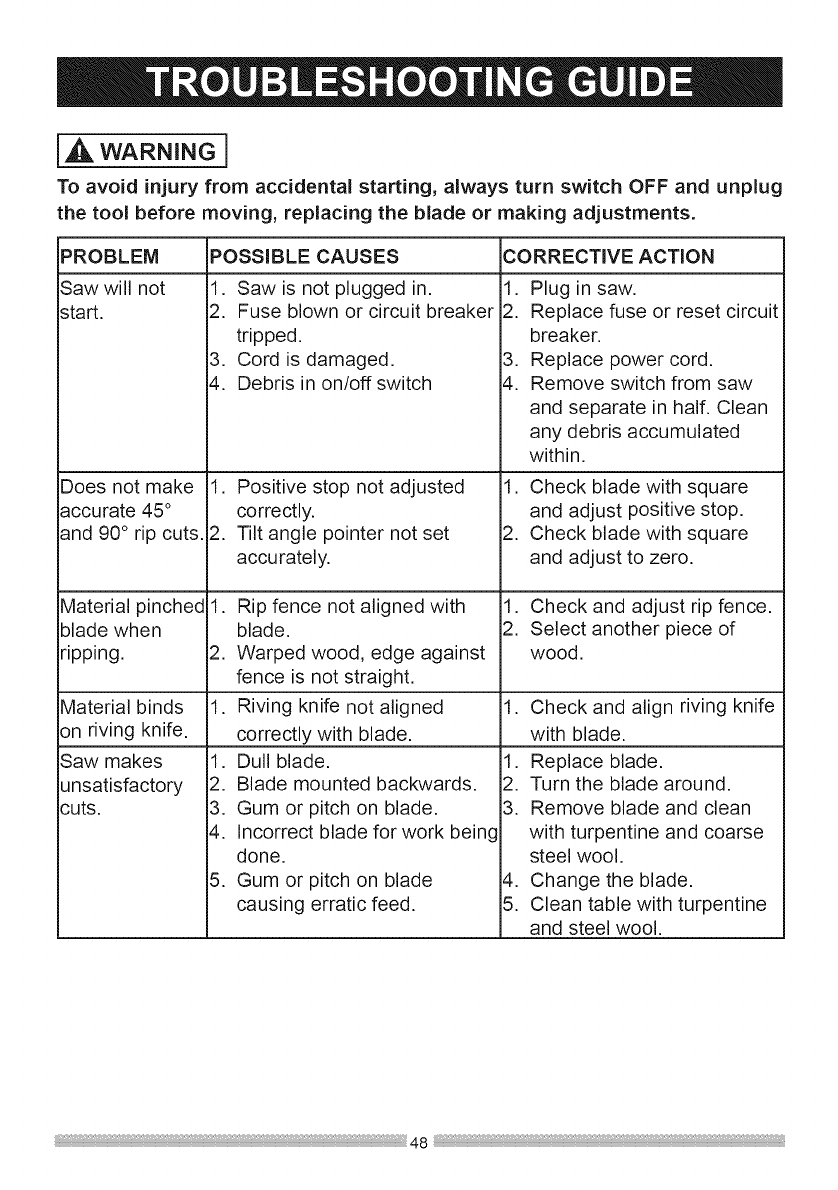 Craftsman 137415030 User Manual TABLE SAW Manuals And Guides 1402281L