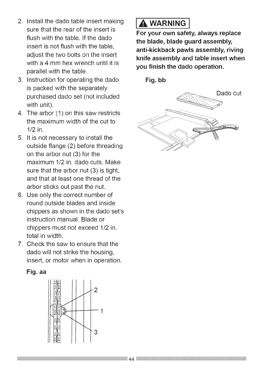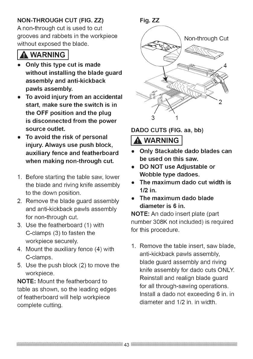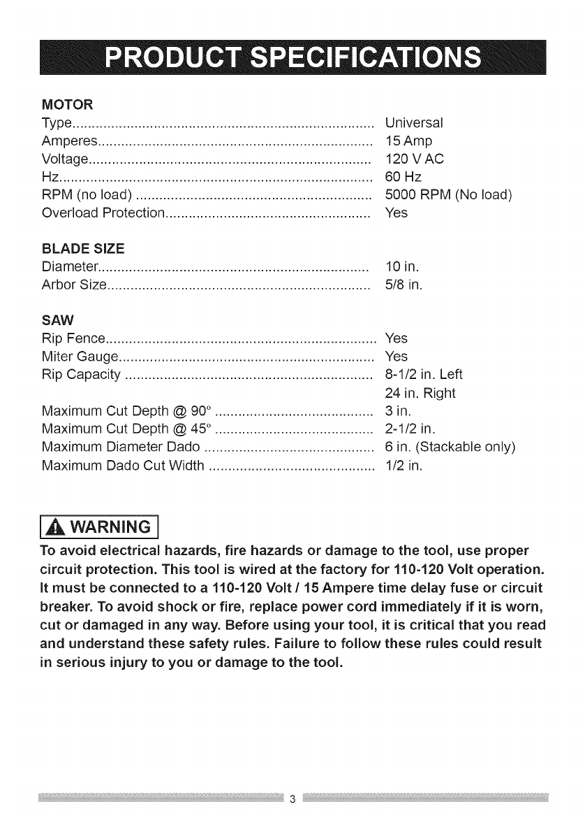 Maximum Dado Cut Width ........................................... 1/2 in.