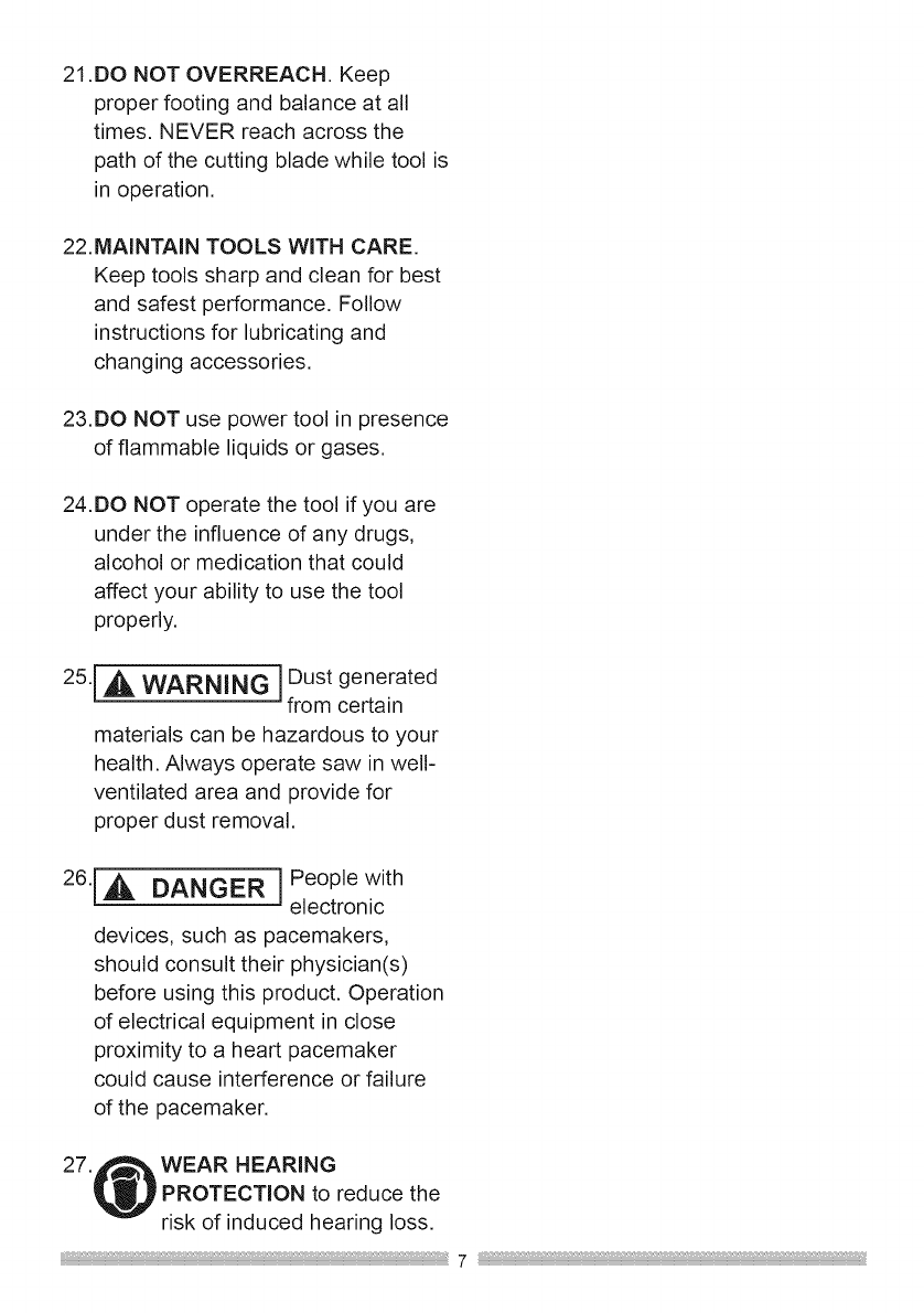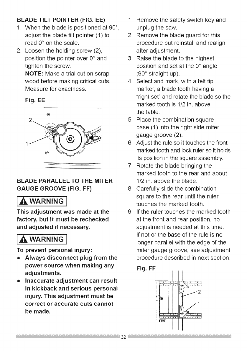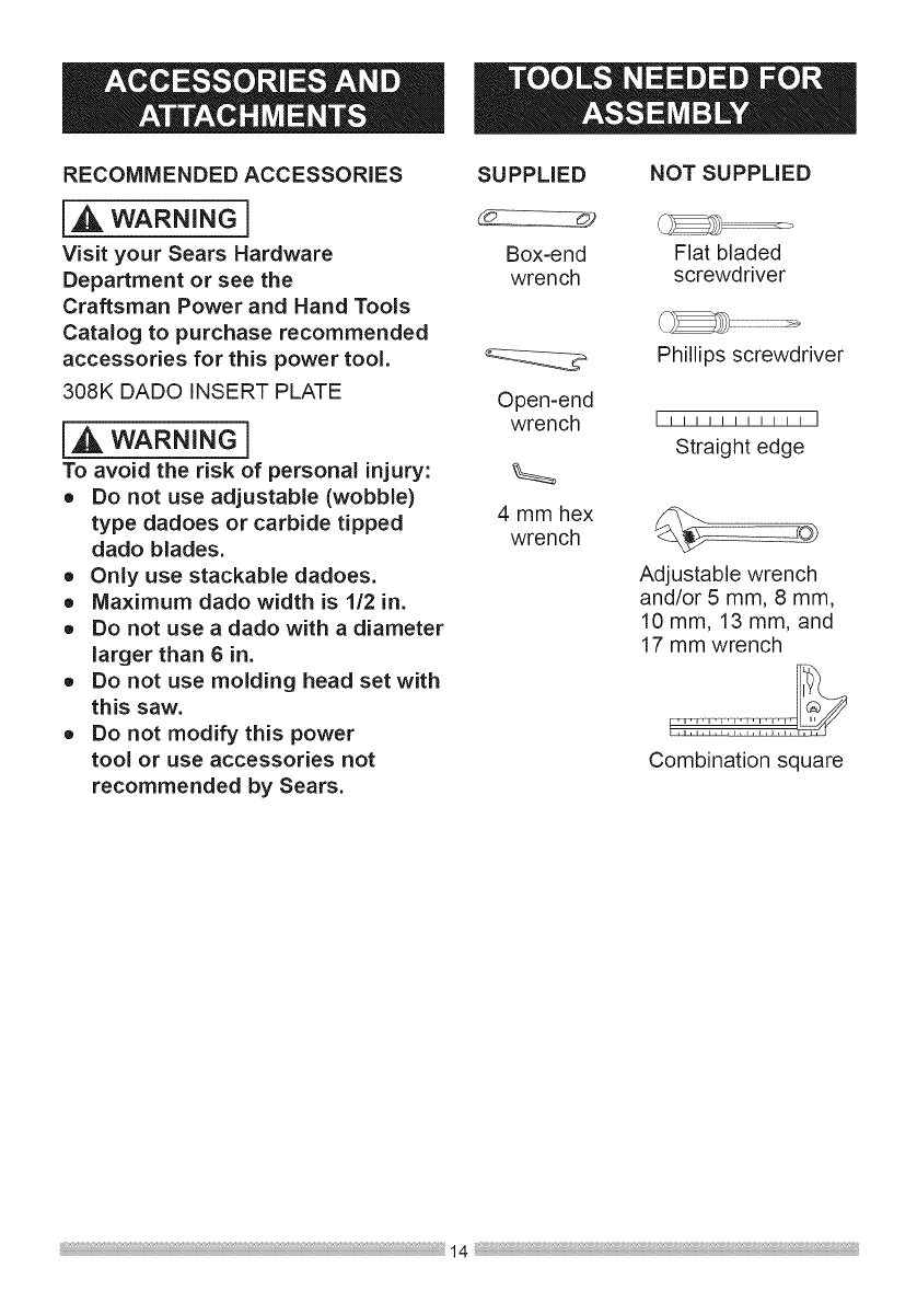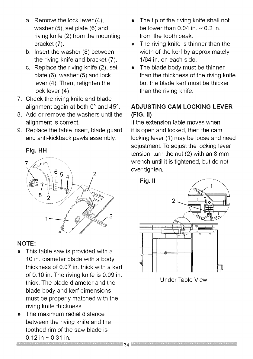 Maximum Dado Cut Width ........................................... 1/2 in.
