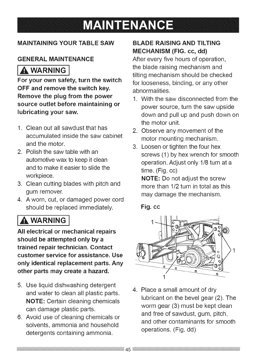This warranty does not cover the blade, which is an expendable part that can wear out from