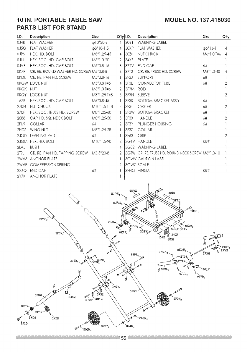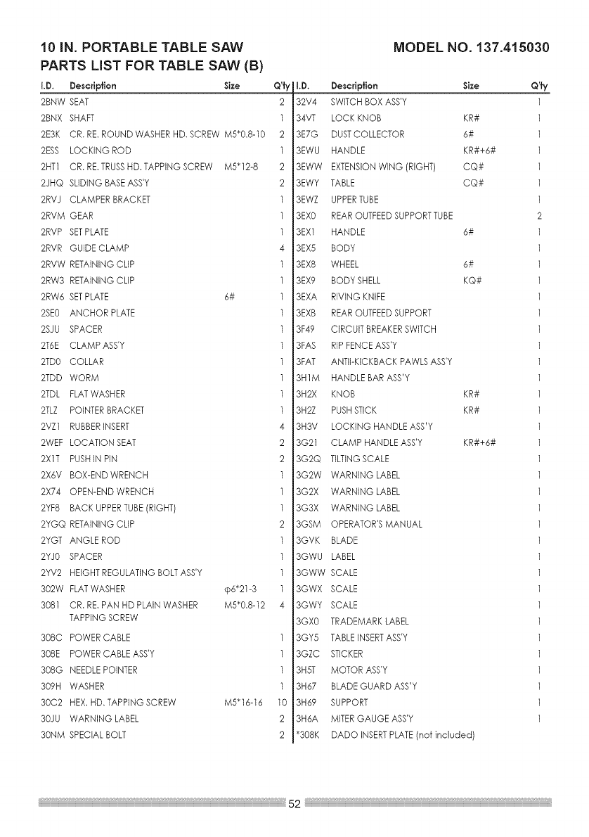 MODEL NO. 137.41503010 iN. PORTABLE TABLE SAW