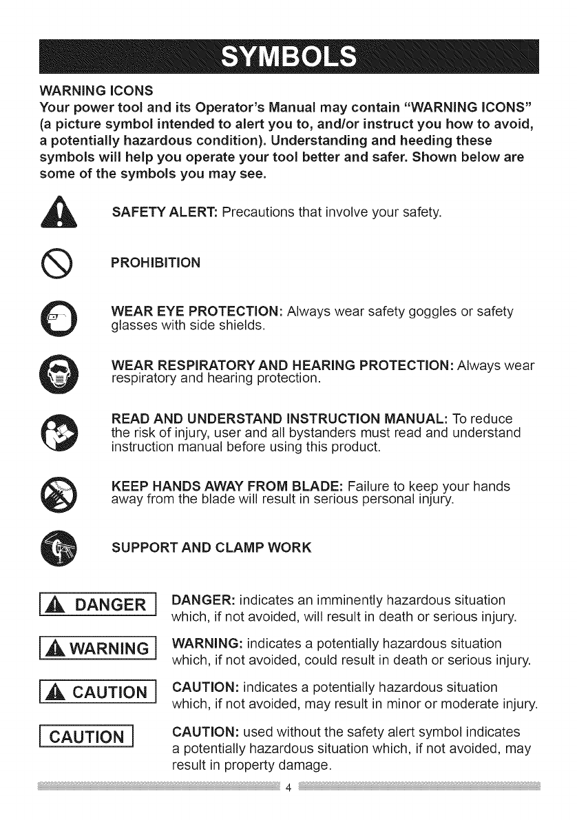 Maximum Cut Depth @ 90° ......................................... 3 in.