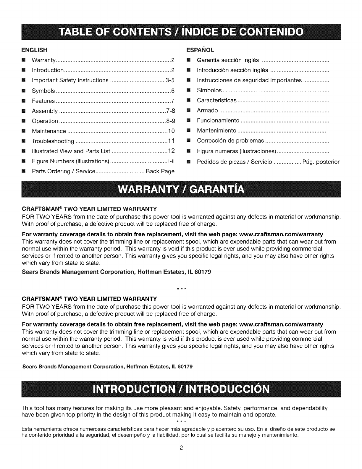 CRAFTSMAN ®TWO YEAR LIMITED WARRANTY