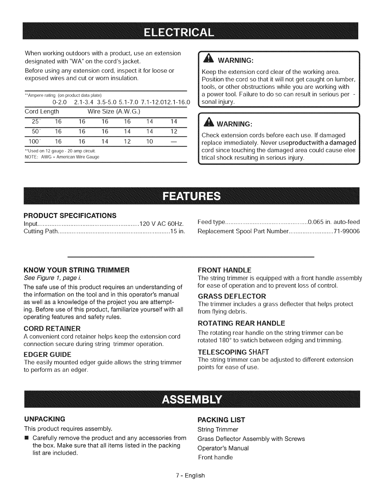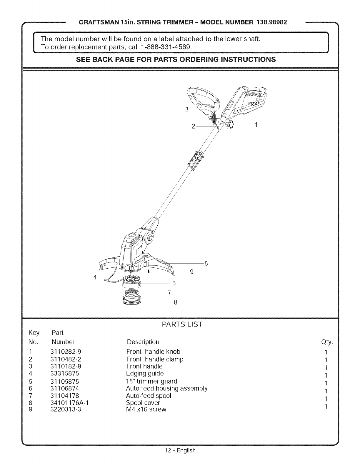fCRAFTSMAN 15in. STRING TRIMMER - MODEL NUMBER 138.98982