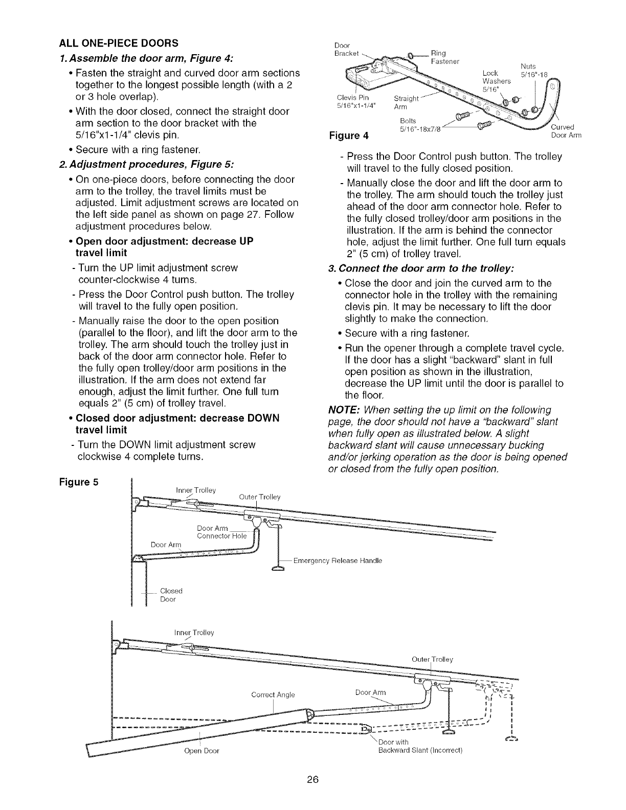Connect the door arm to the trolley ..................... 25-26