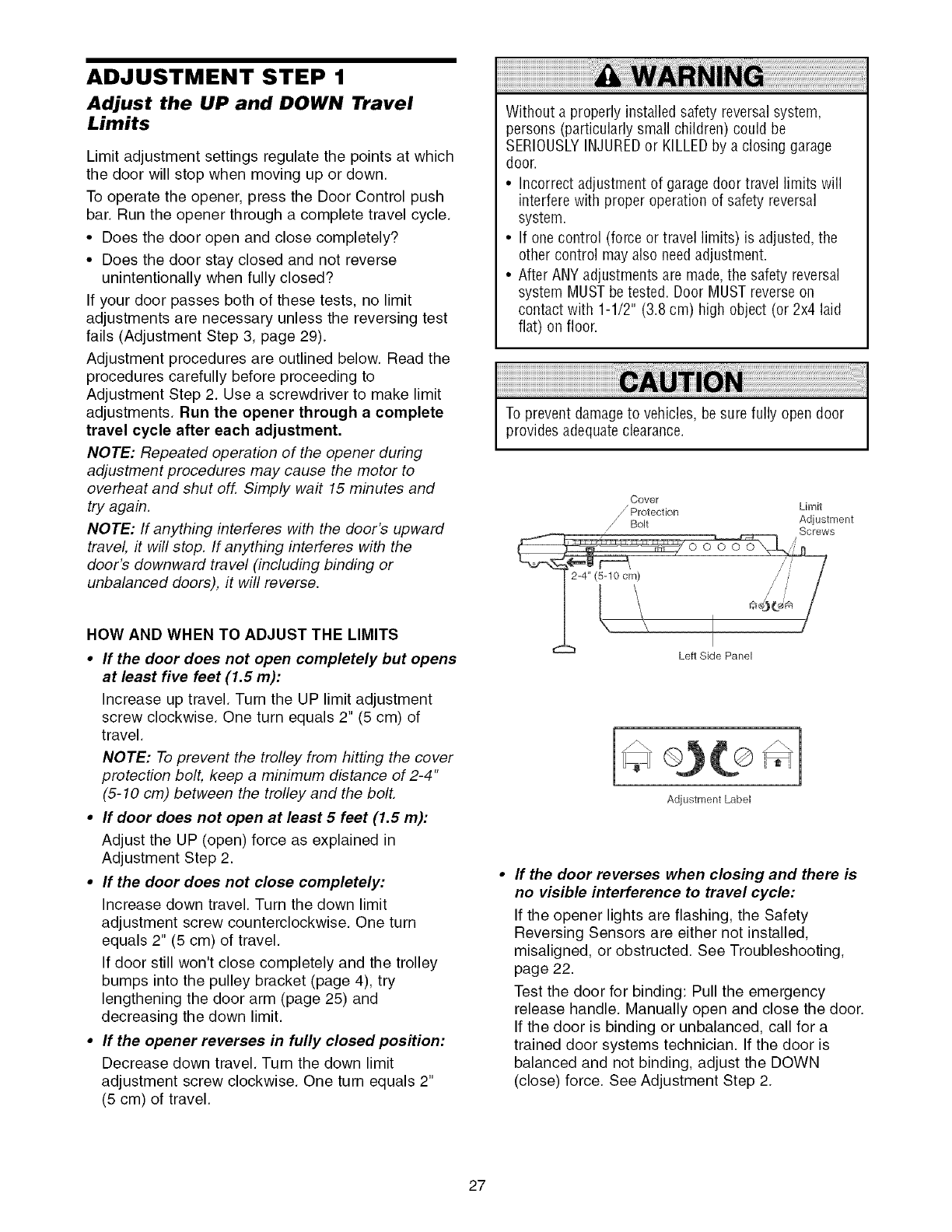 Adjust the travel limits ............................................... 27