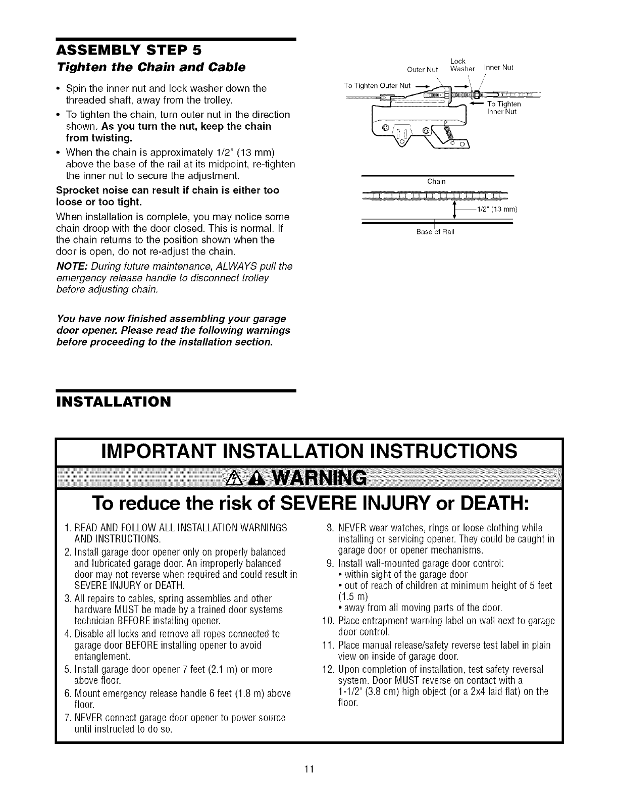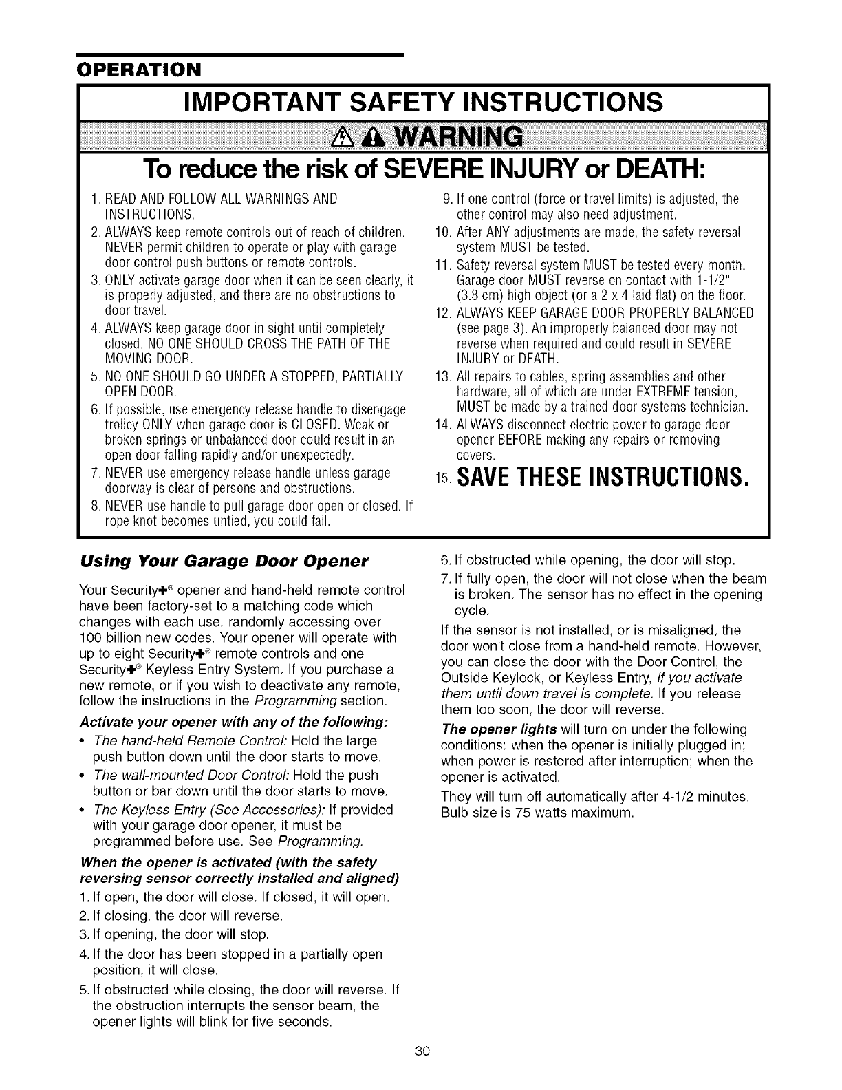 This garage door opener has been designed and tested to offer safe service provided it is installed, operated,