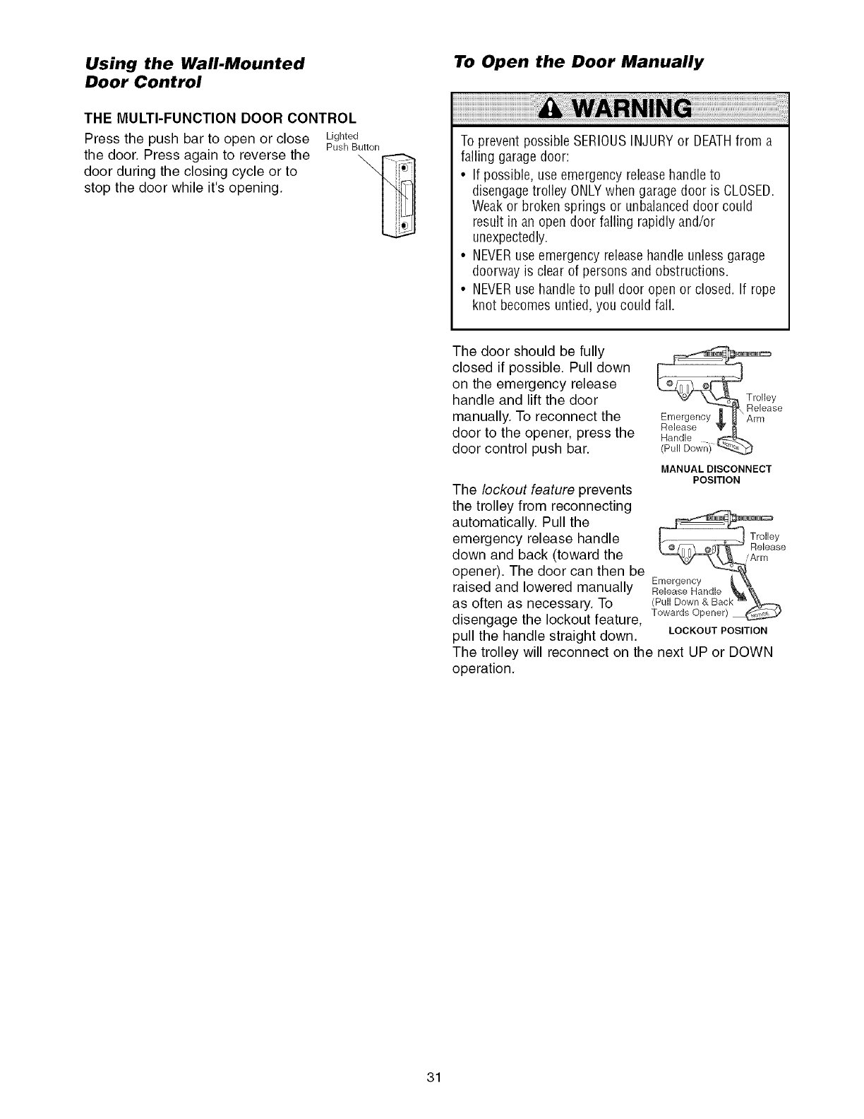 Using the wall-mounted door control ........................ 31