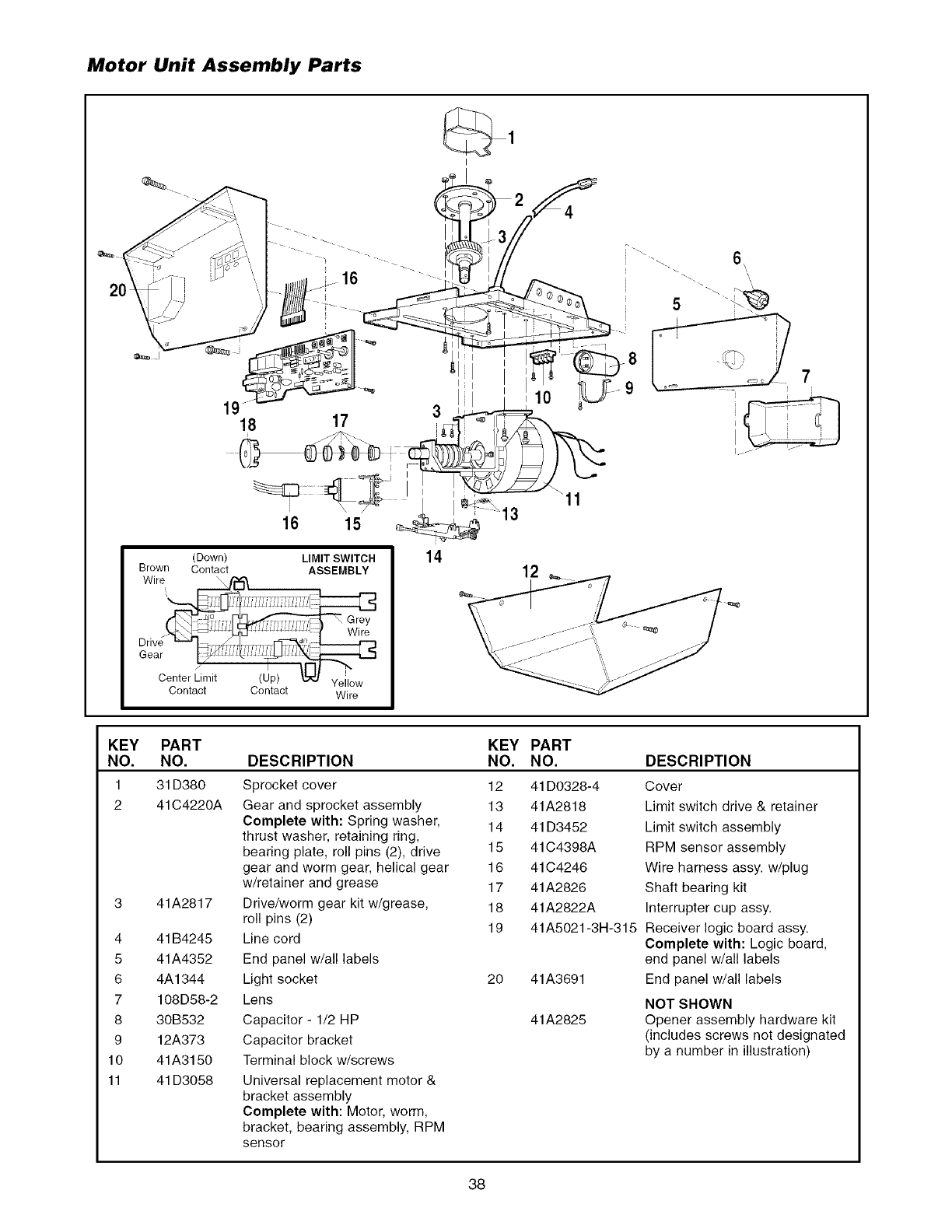 Motor unit assembly parts ......................................... 38