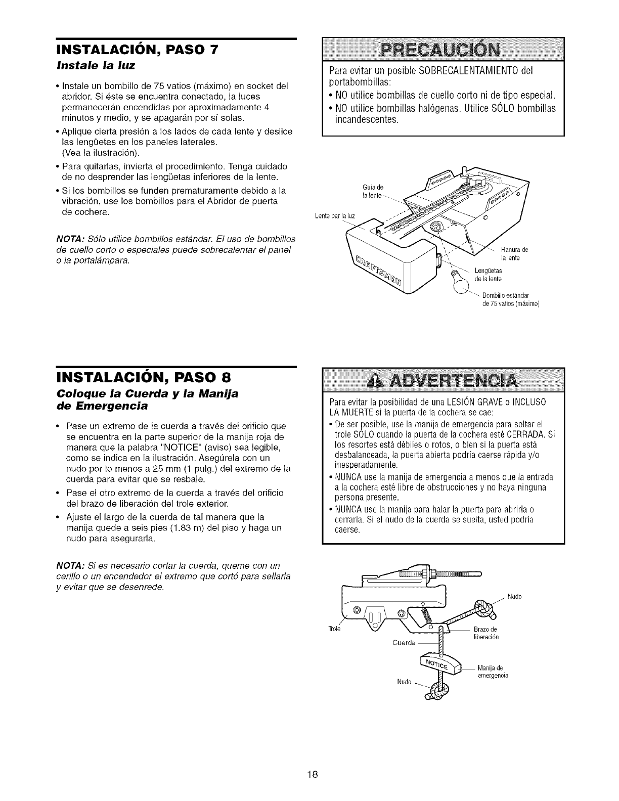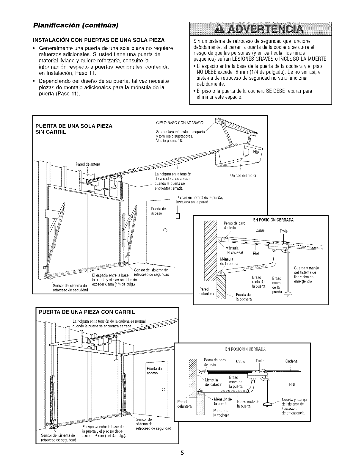 (Solo para puertas seccionales)