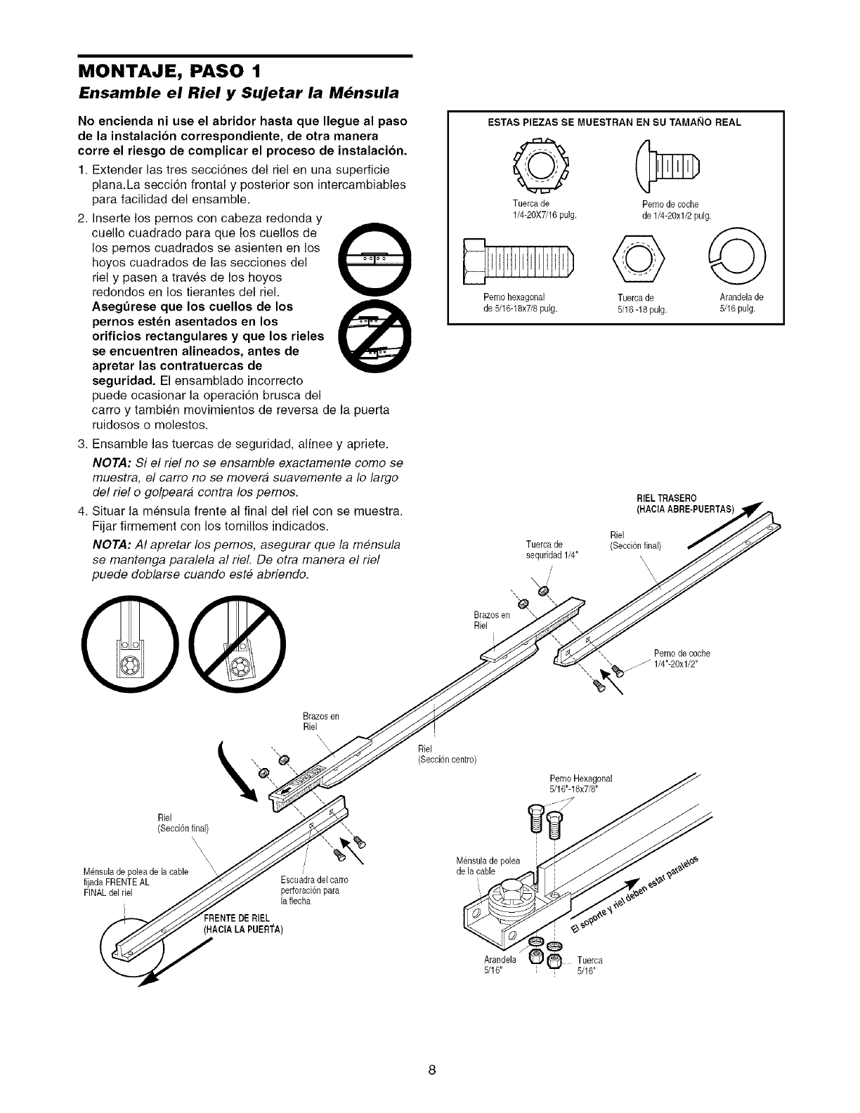 Assemble the rail and attach the pulley bracket ......... 8