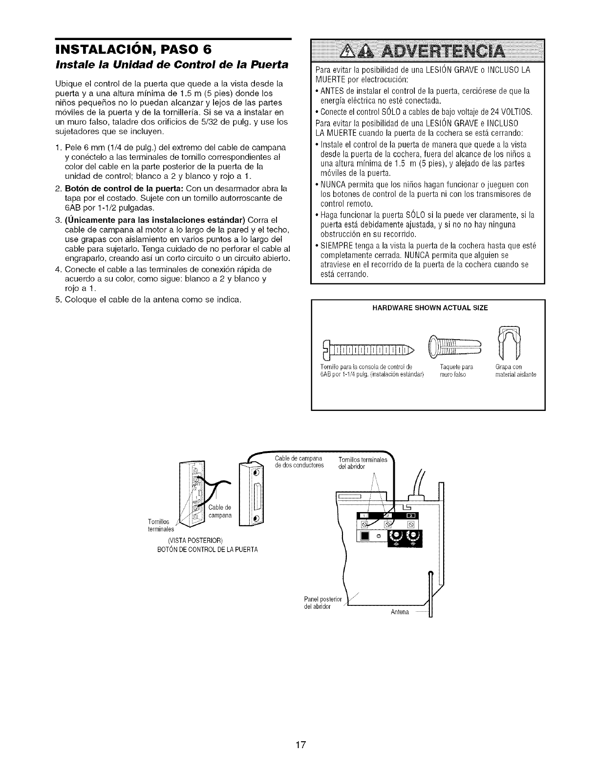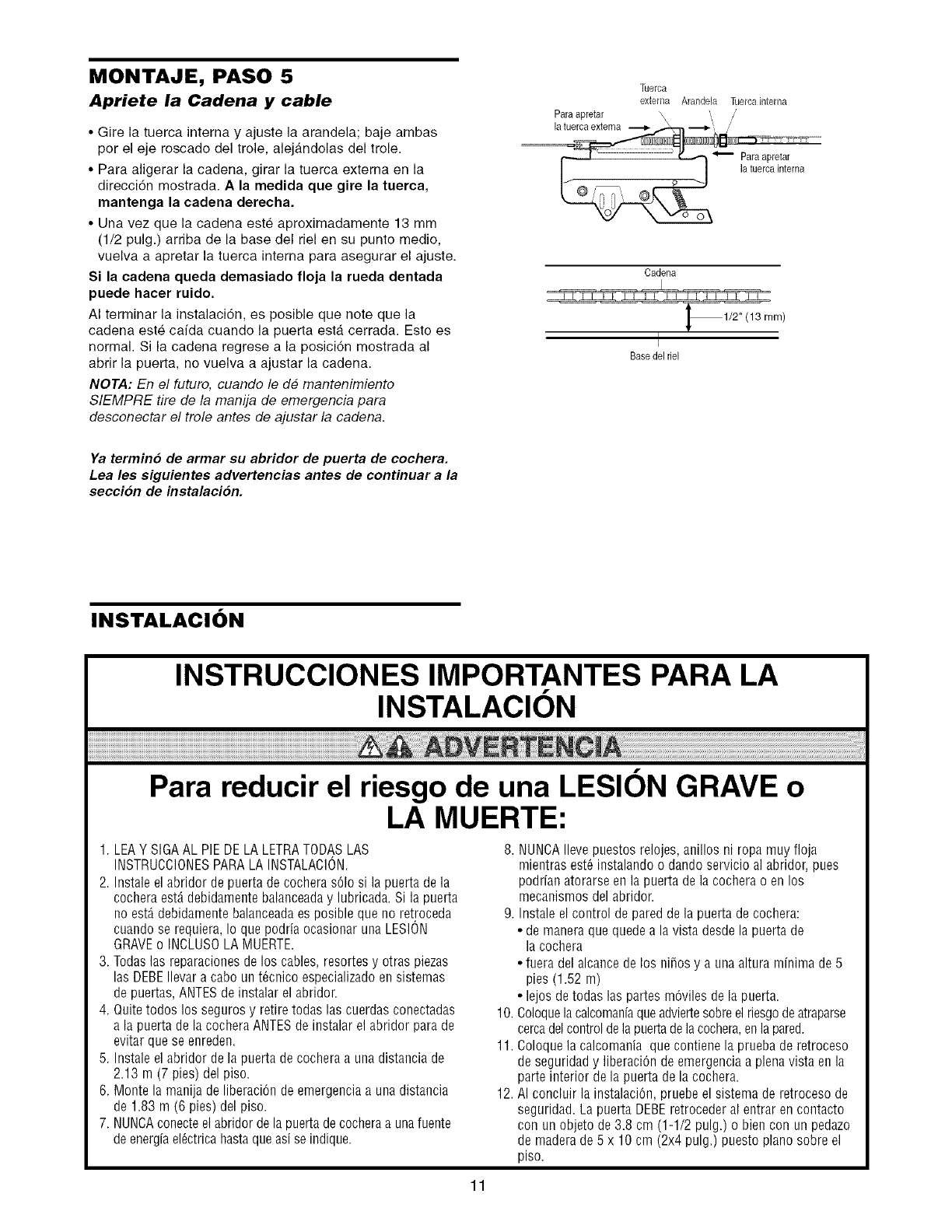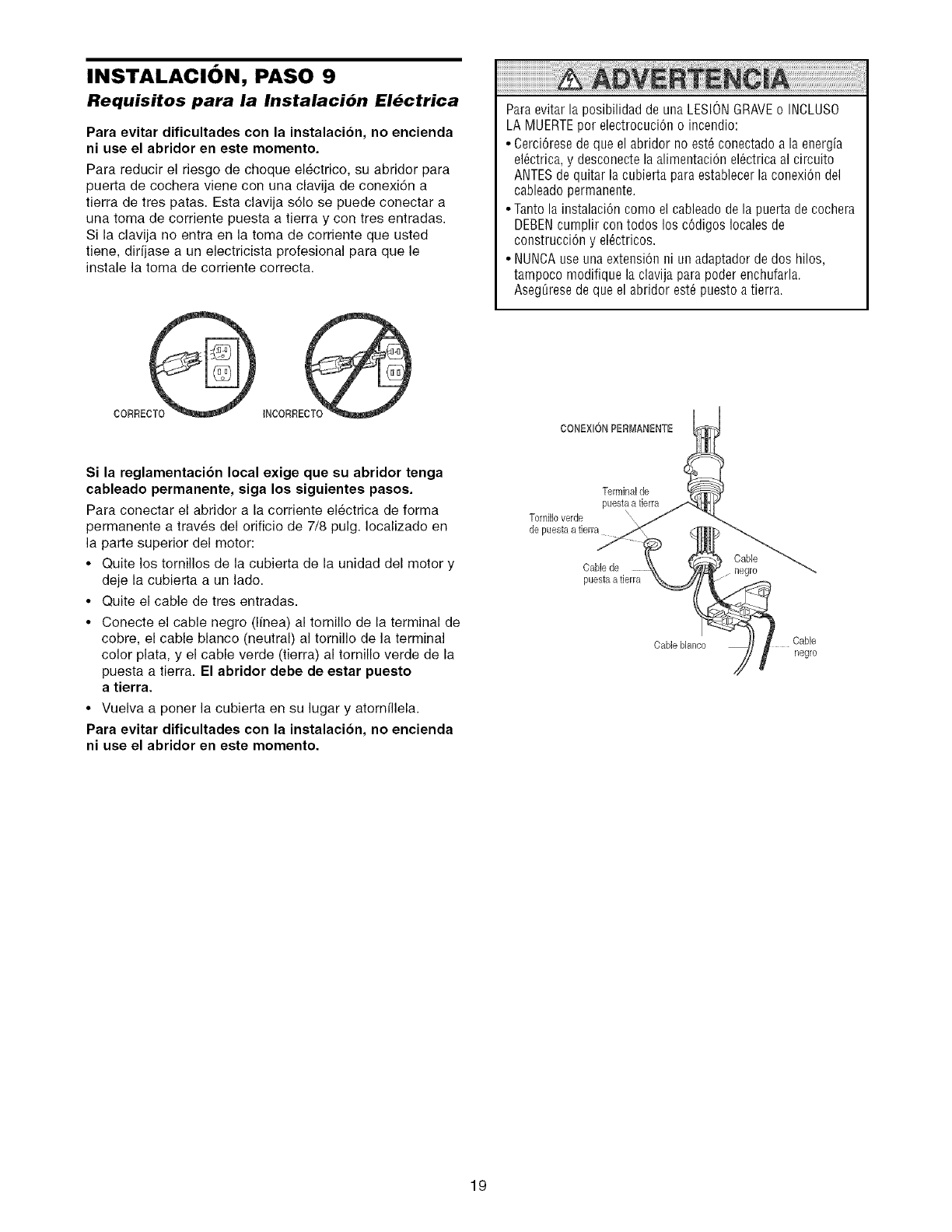 usarse cuando se instala el abridor en