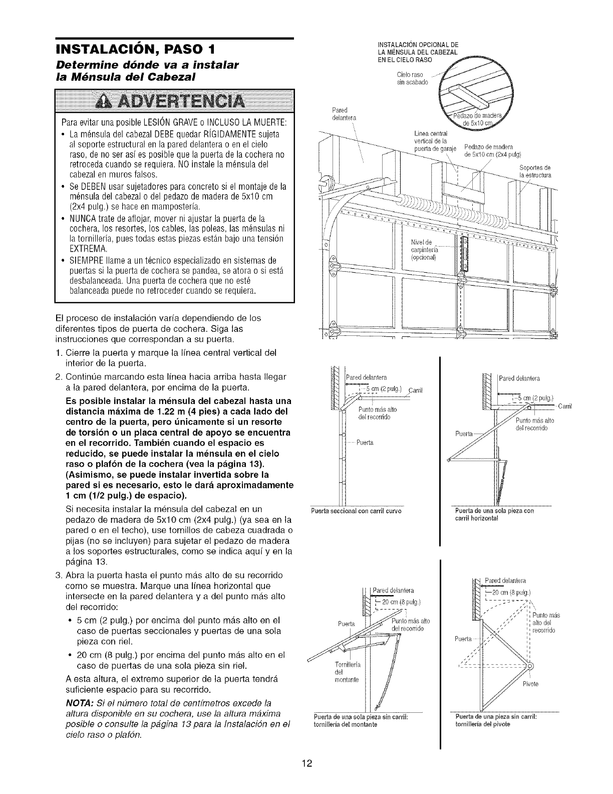 altura del recorrido de la puerta. Para