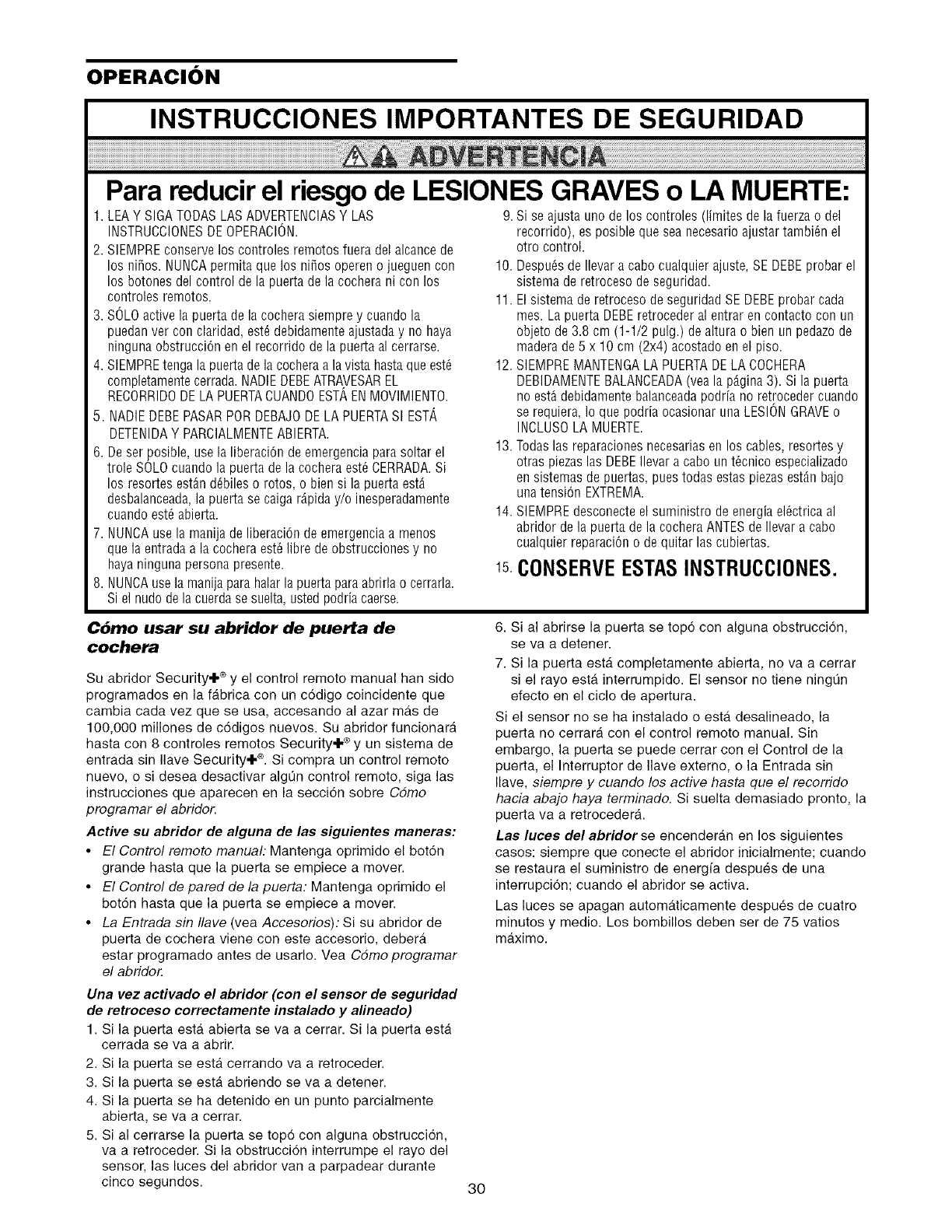 seguridad y las instrucciones de