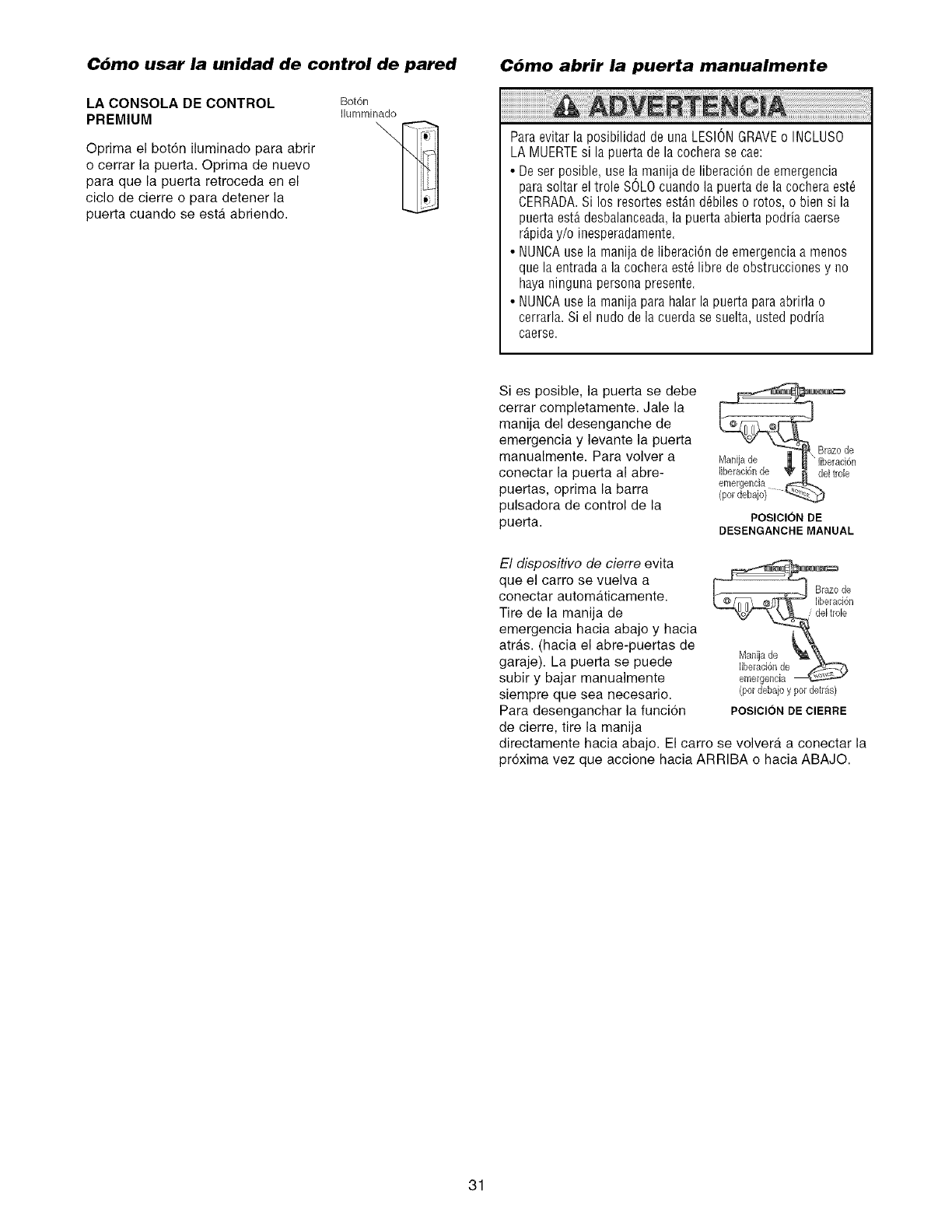 cochera manualmente desde el exterior,